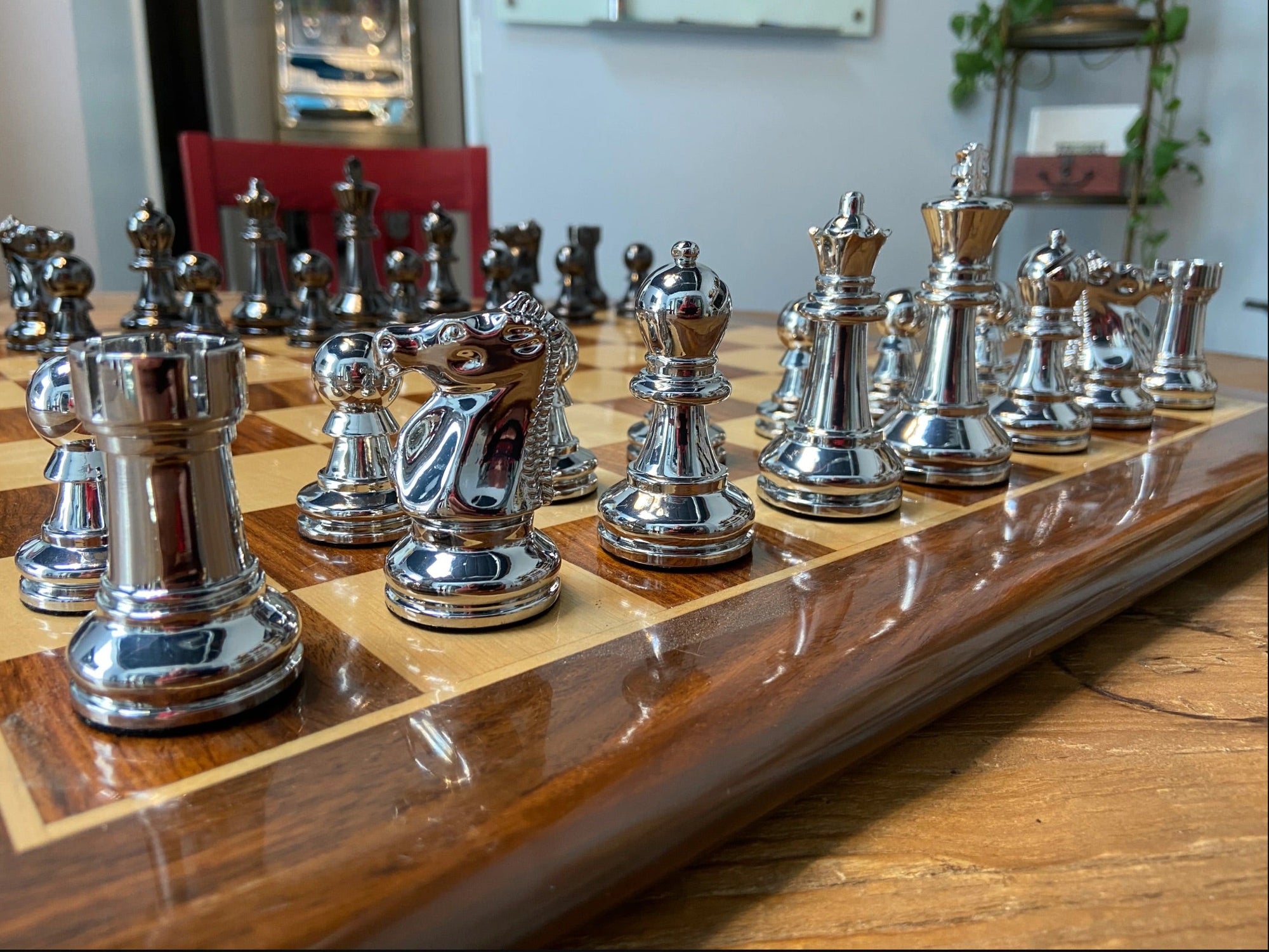 Bobby Fischer Metal Ultimate Chess Set, Wood Board 21.75 in., 3.6 in. King