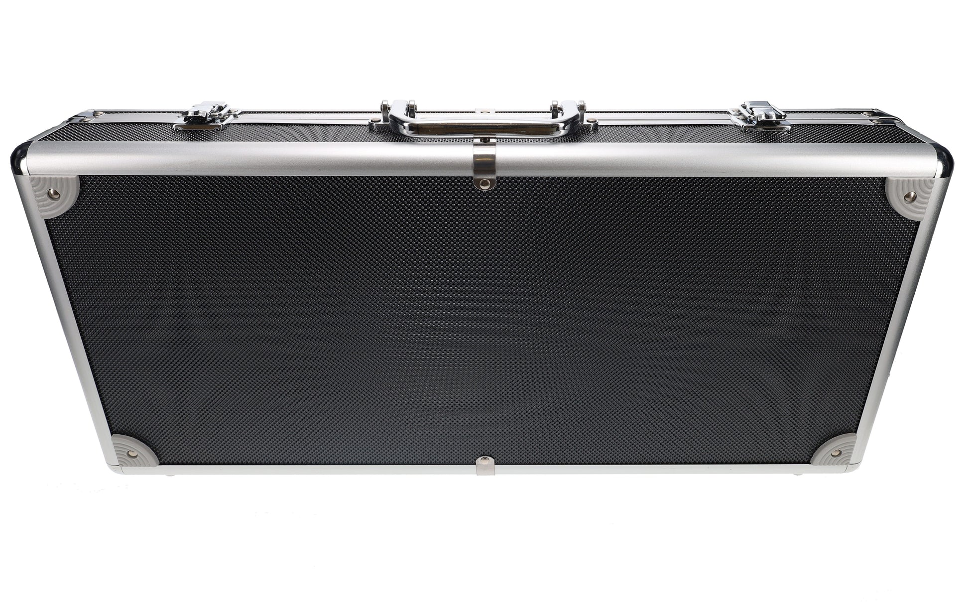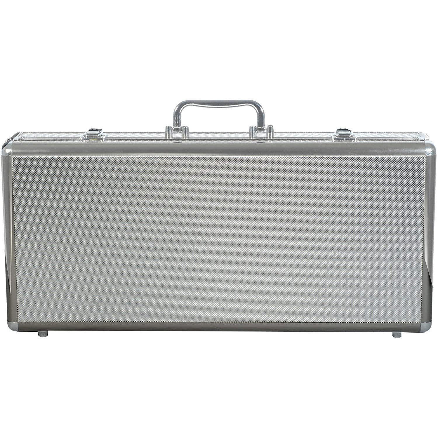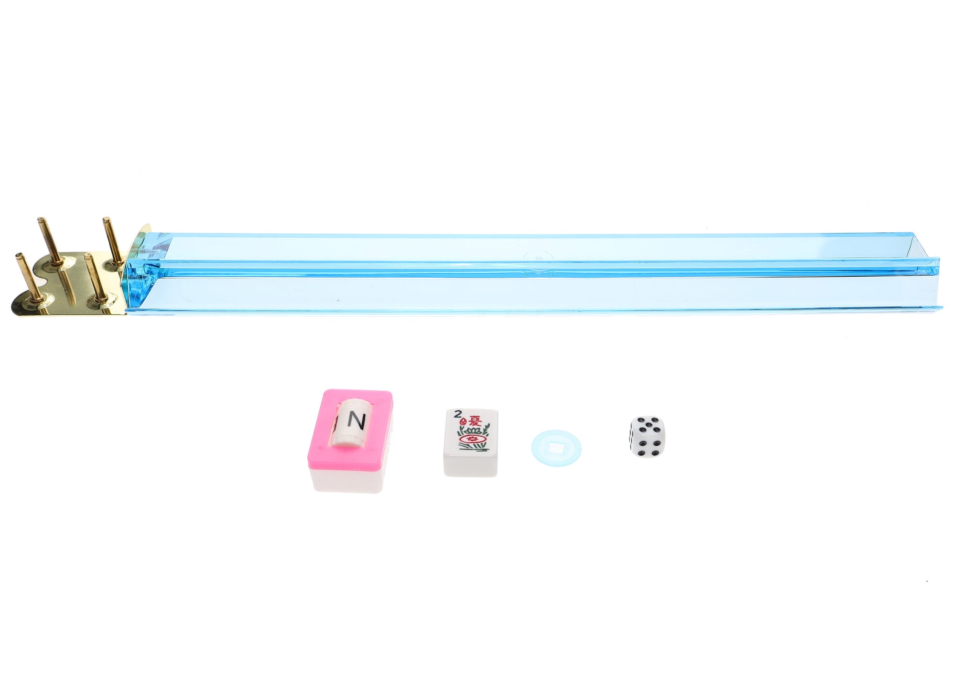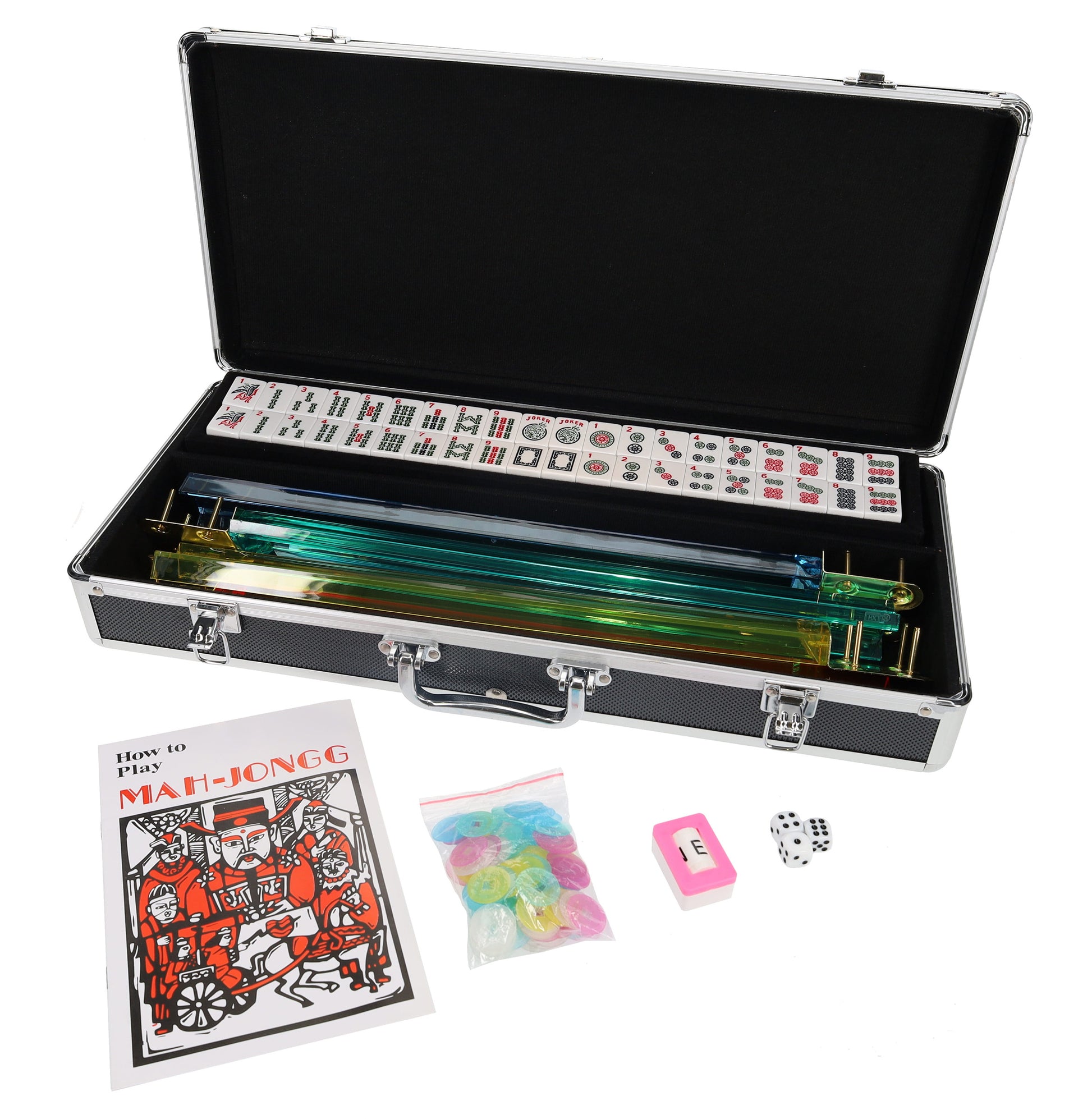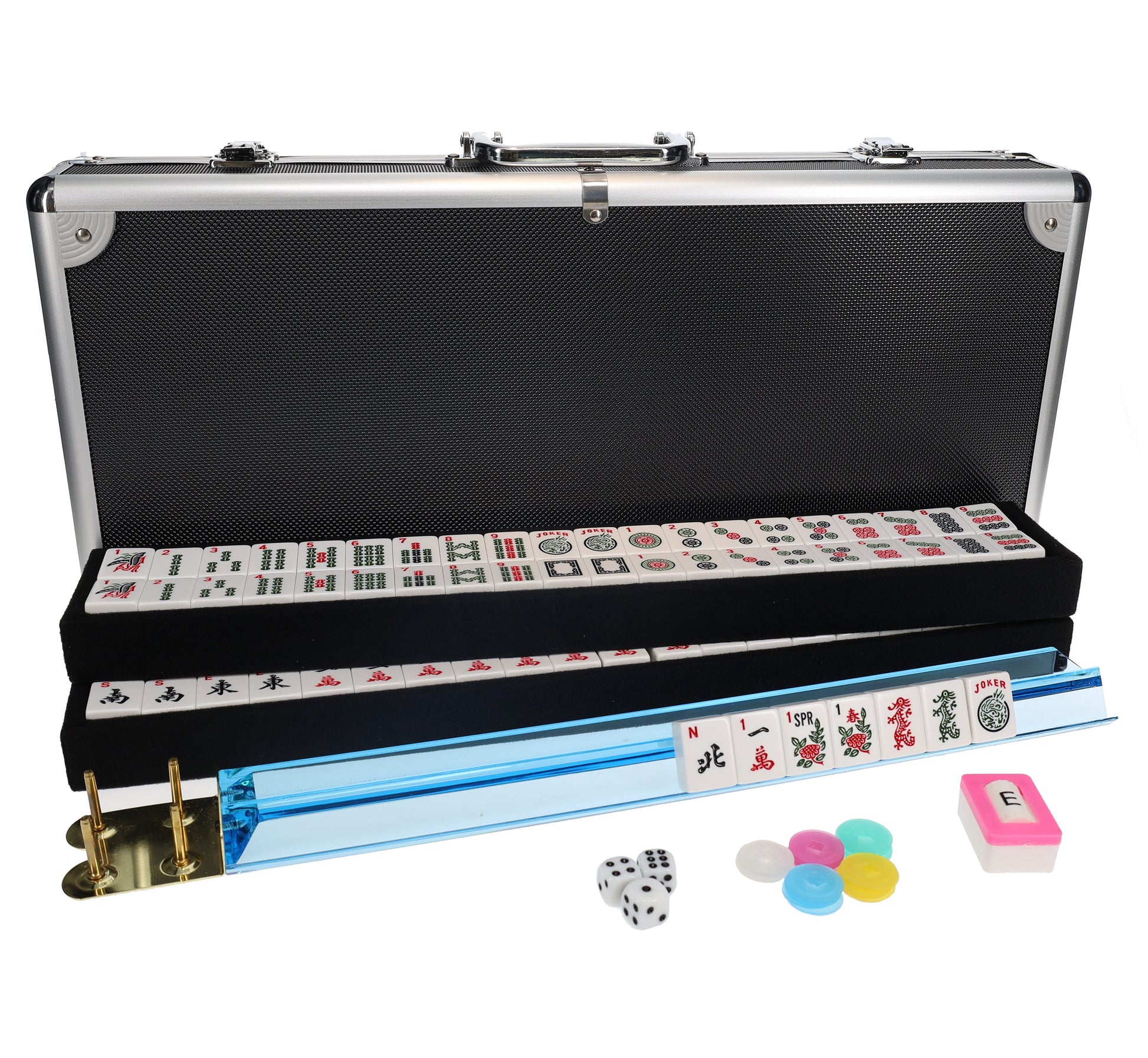 You'll be the envy of all your friends with this executive American Mahjong set that comes in a sophisticated brief case with comfortable grip handle for travel. It has protective plastic feet and table pads. Also includes 2 felt trays. Each measures 19 x 3.25 x 1 inch. Plastic racks each measure 16 x 2 x .75 inches. Take "the game of a hundred intelligences" to the next level! Also comes with 4 multicolored tile pushers 18 inches long (Pink, Green, Yellow, Blue).