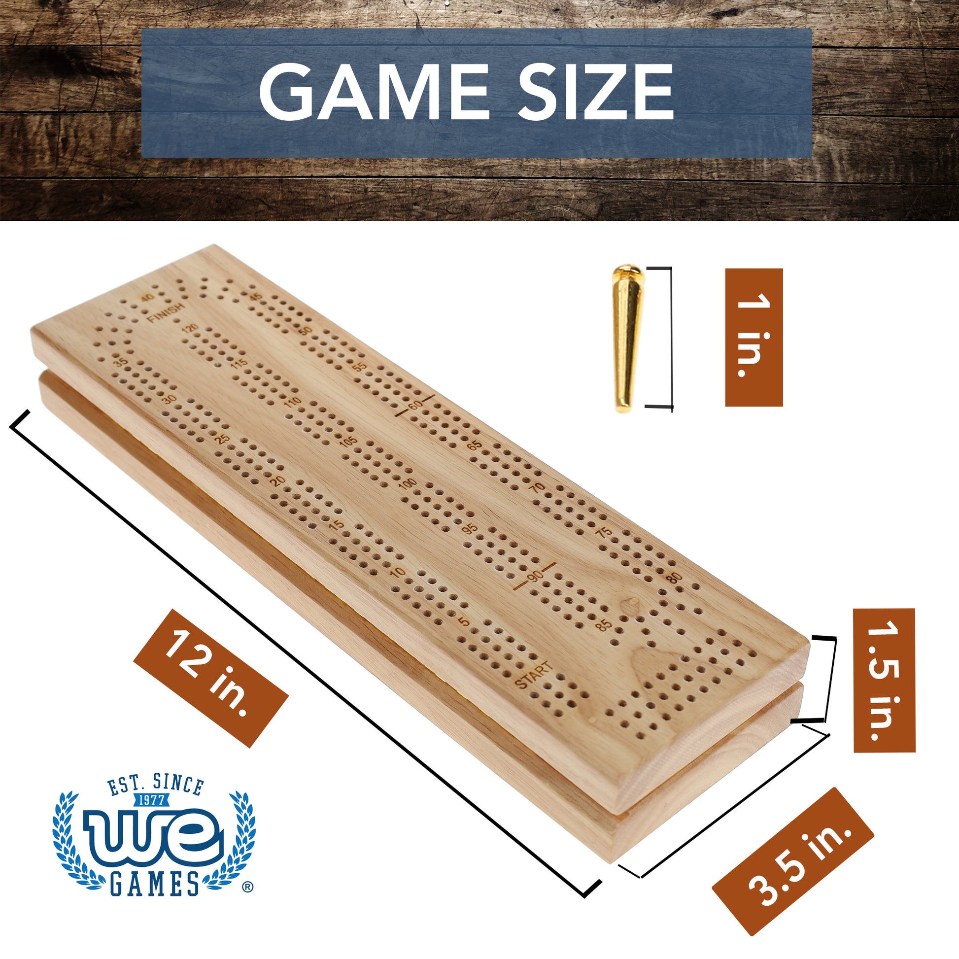 WE Games Cabinet Cribbage Set - Solid Wood Continuous 3 Track Board with Easy Grip Pegs, Cards and Storage Area