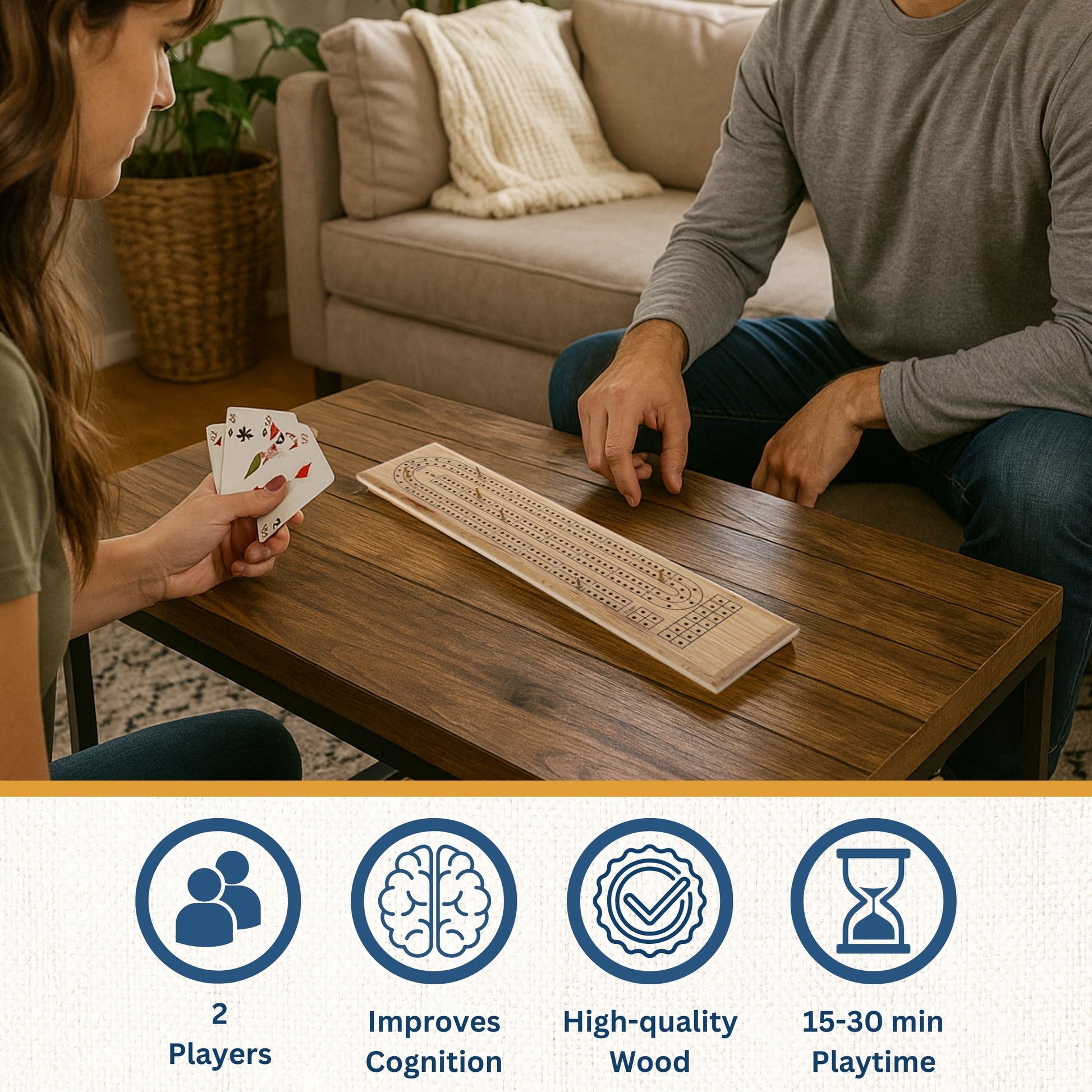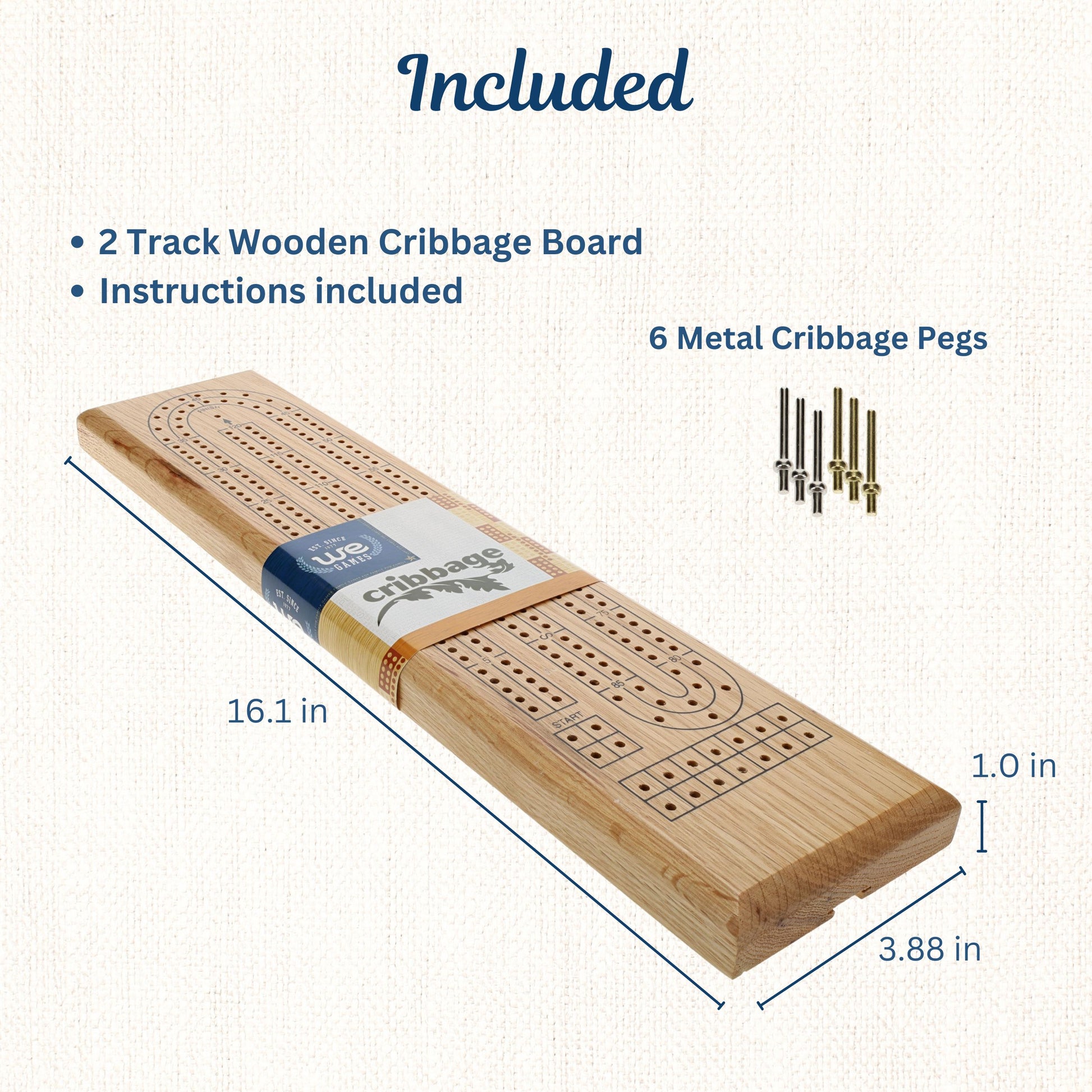 WE Games Classic Cribbage Set - Solid Wood Continuous 2 Track Board with Metal Pegs