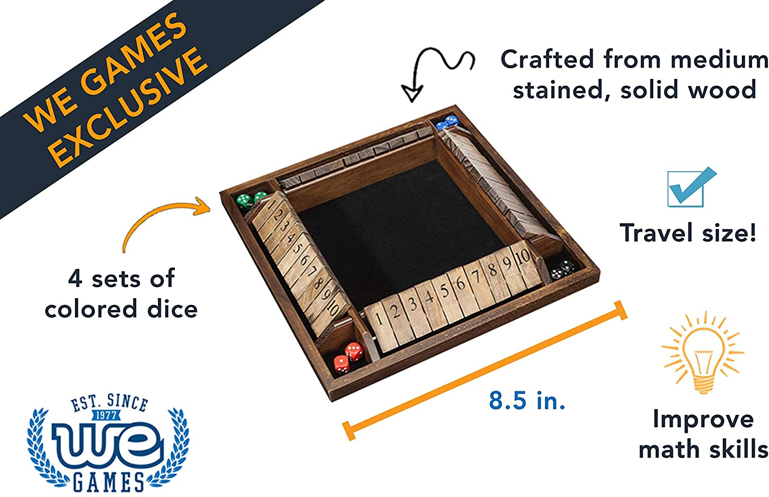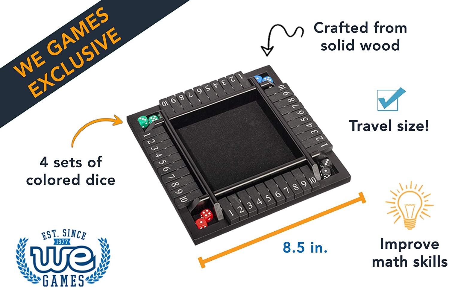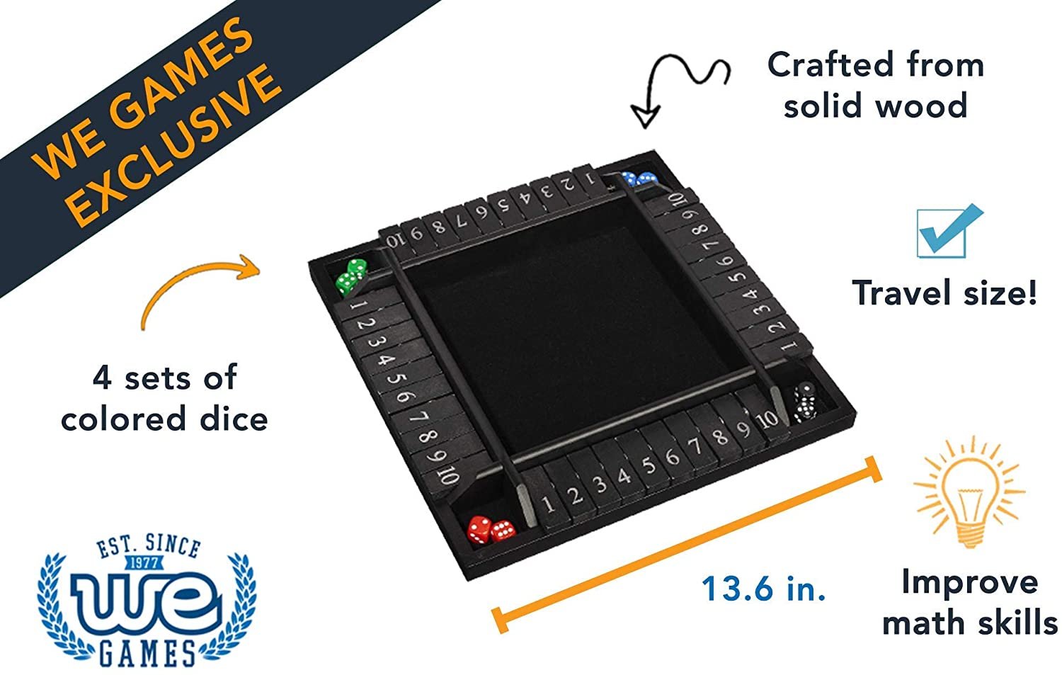 WE Games 4 Player Travel Shut The Box Board Game, 8.5 in.