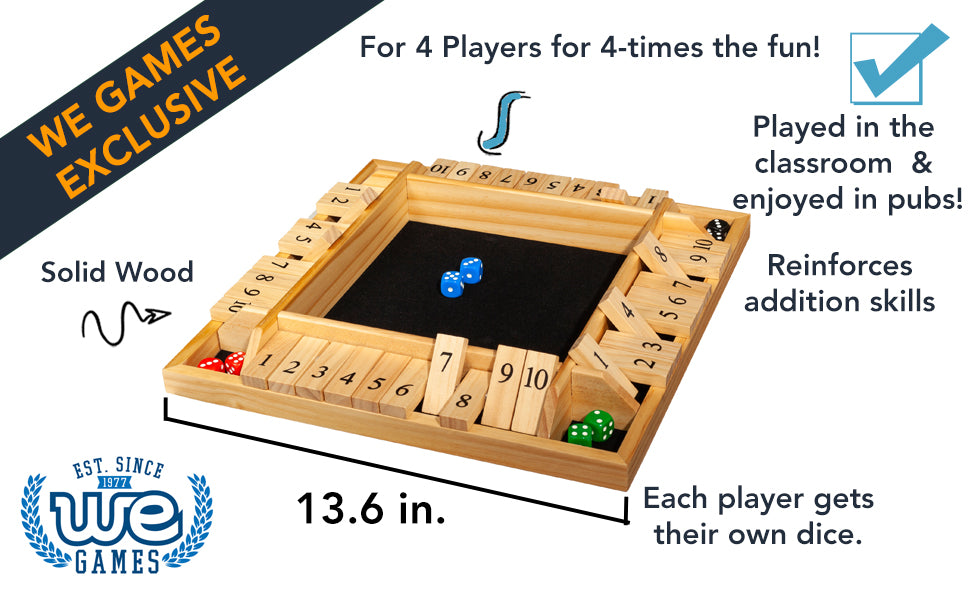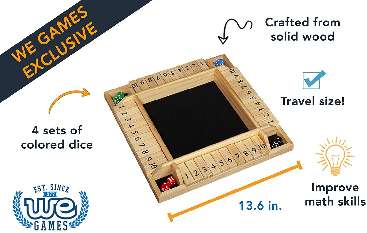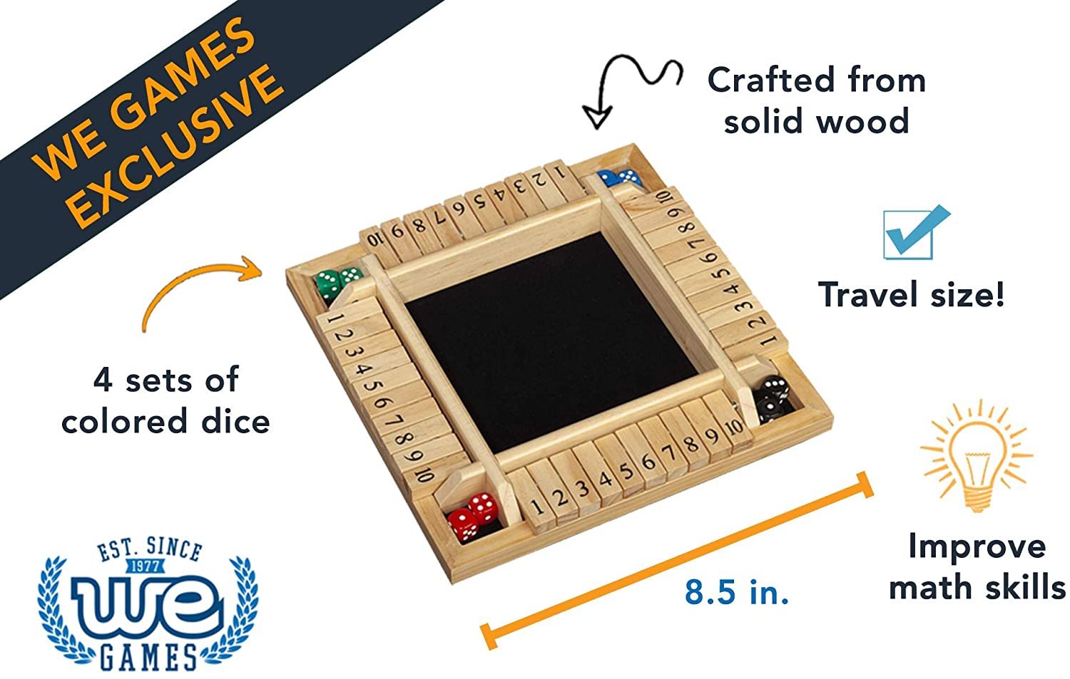 WE Games 4 Player Travel Shut The Box Board Game, 8.5 in.