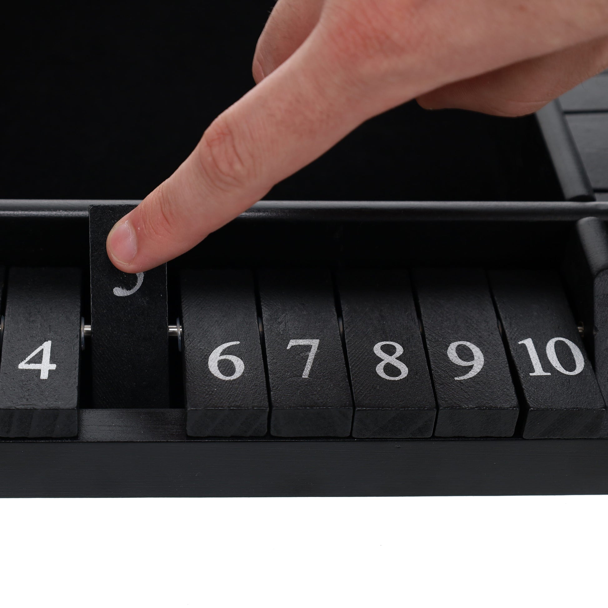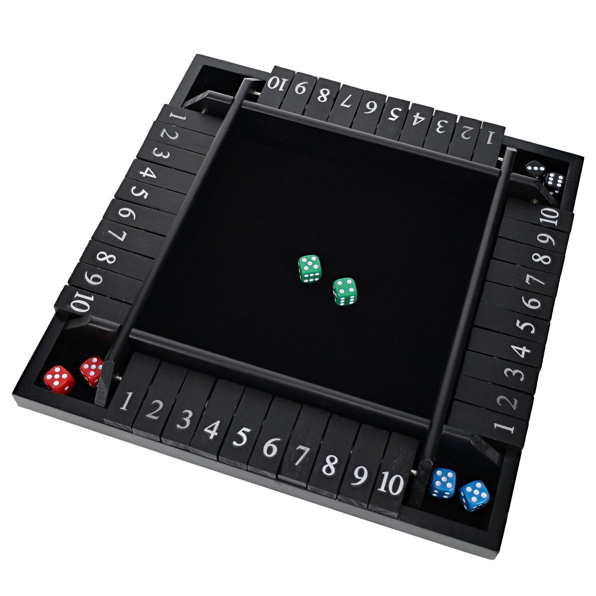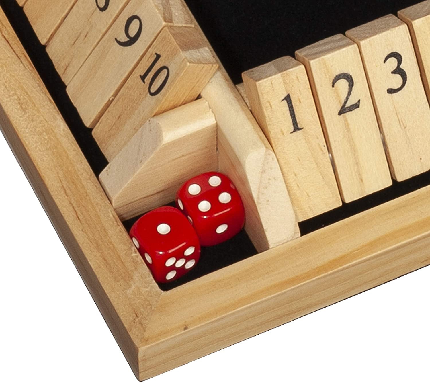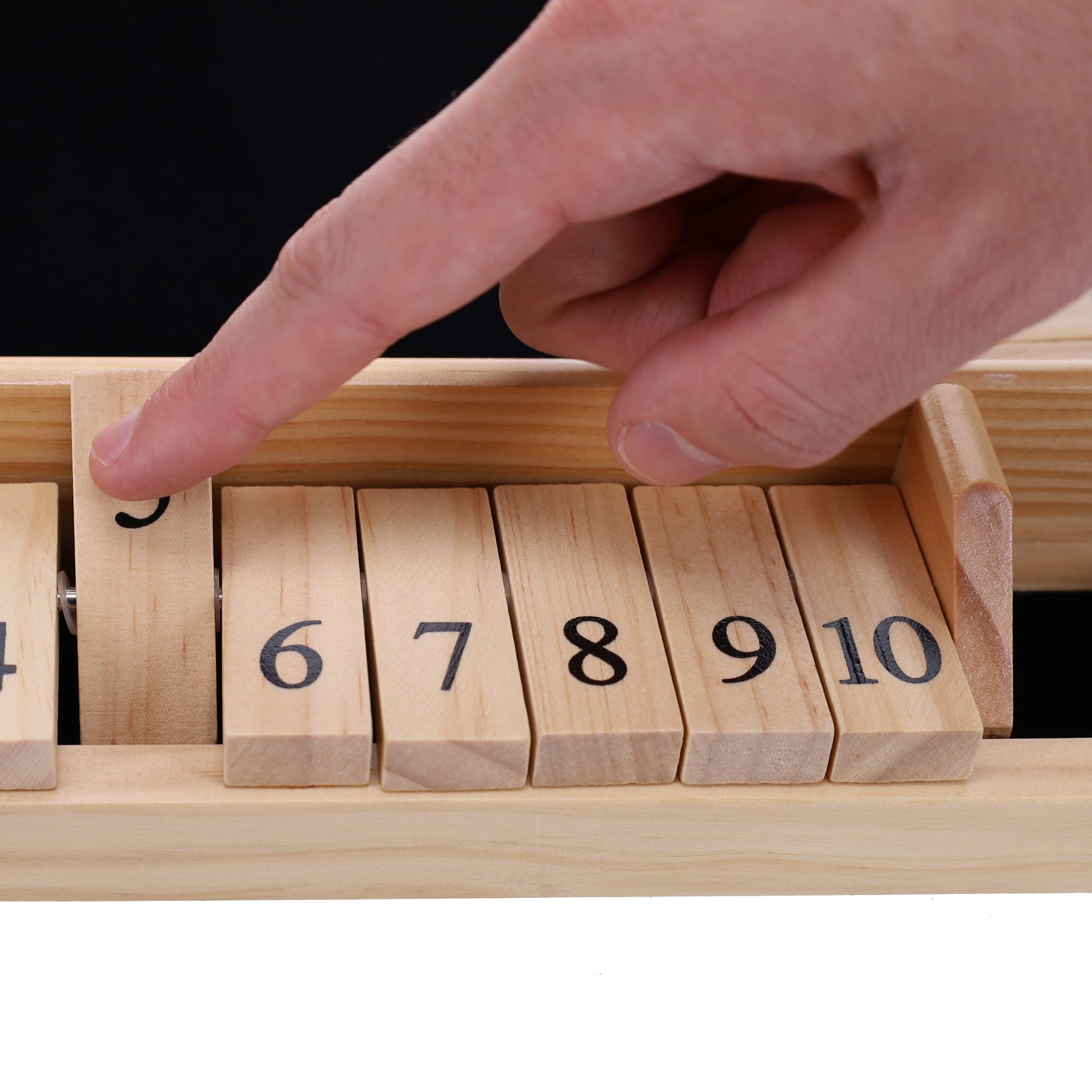 This beautiful game is crafted from solid hardwood and features 10 wooden number tiles bringing more numerical combinations into play. Can be played with any number of players. Includes eight dice (4-different colors) so each player gets their own dice color. This makes it easier for all players to be rolling at once if you prefer to play the race version of the game. The playing surface is lined with black velveteen felt for the softest of dice rolls. Also features velveteen felt on the underside of the game to prevent scratches to table top surfaces. Originally, the game was played by fishermen off the coast of Normandy more than two hundred years ago. After a long day at sea, they would squander away their earnings by playing this dice game. It is no wonder it is still enjoyed in pubs across North America and Europe. While we don't advocate gambling, we do advocate this beautiful, well-constructed game that will provide hours of fun wherever you go. This game also teaches and reinforces addition skills as players roll the dice, add up the values, and then lay down the tiles that have the sum. These simple rules keep the player engaged in computing addition facts while enjoying socializing with friends. Teachers use this game in classrooms and the game's sturdy construction will make it outlast other versions.