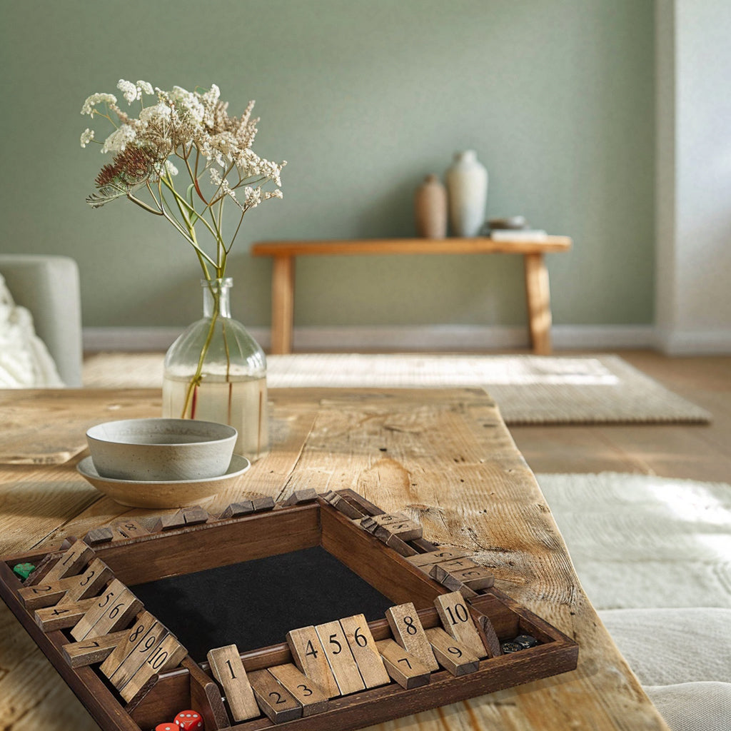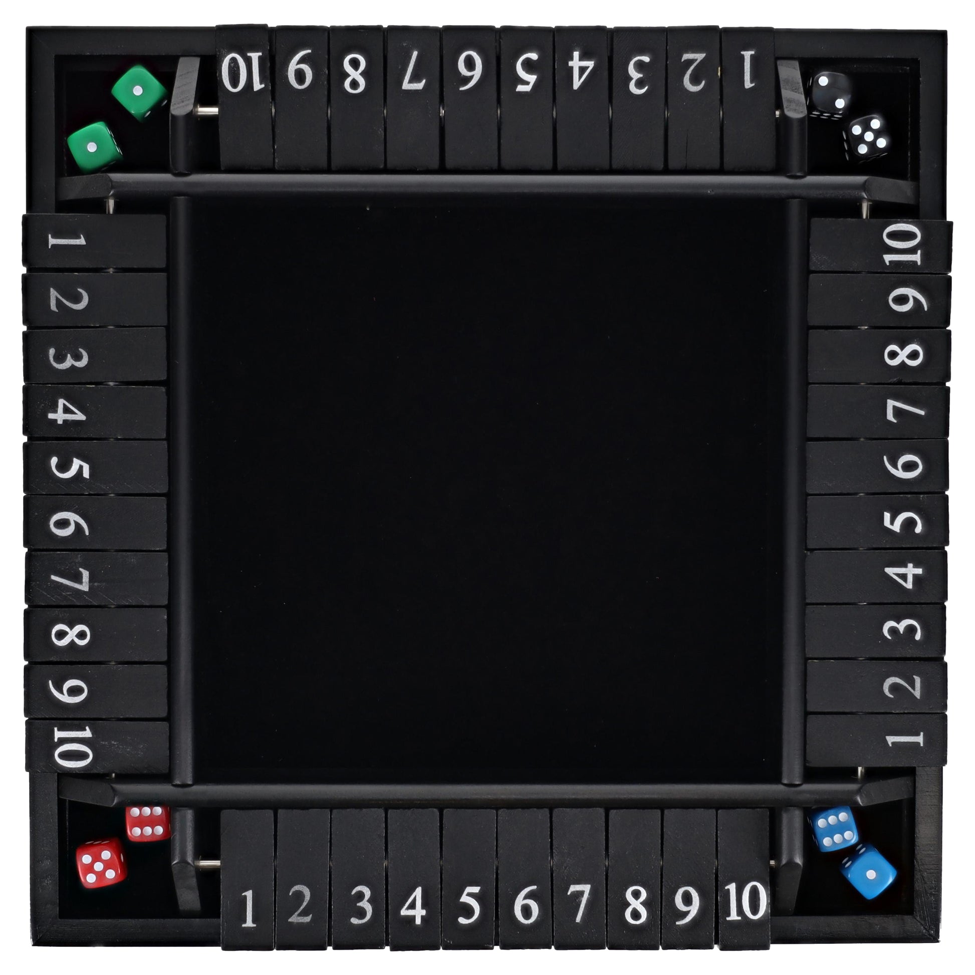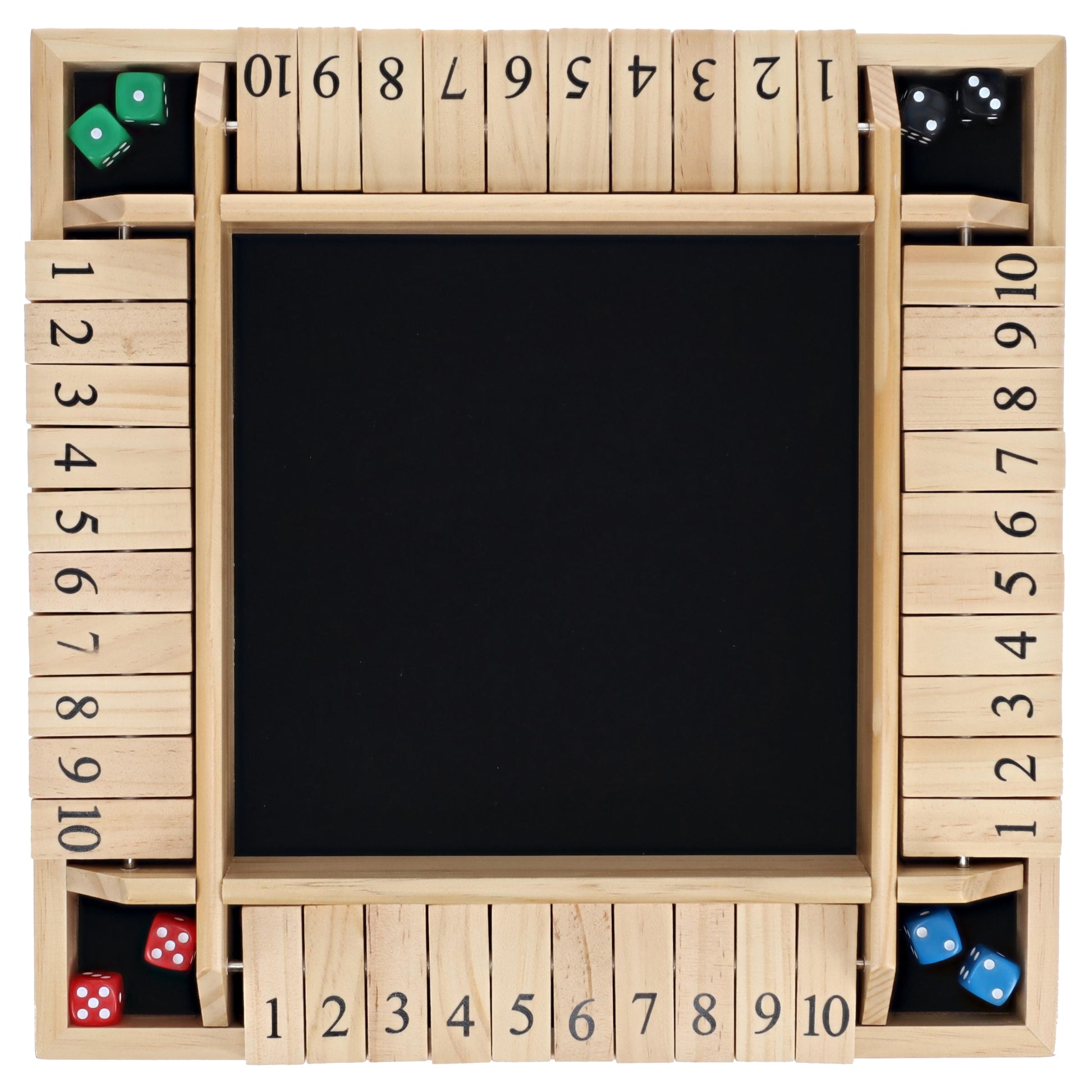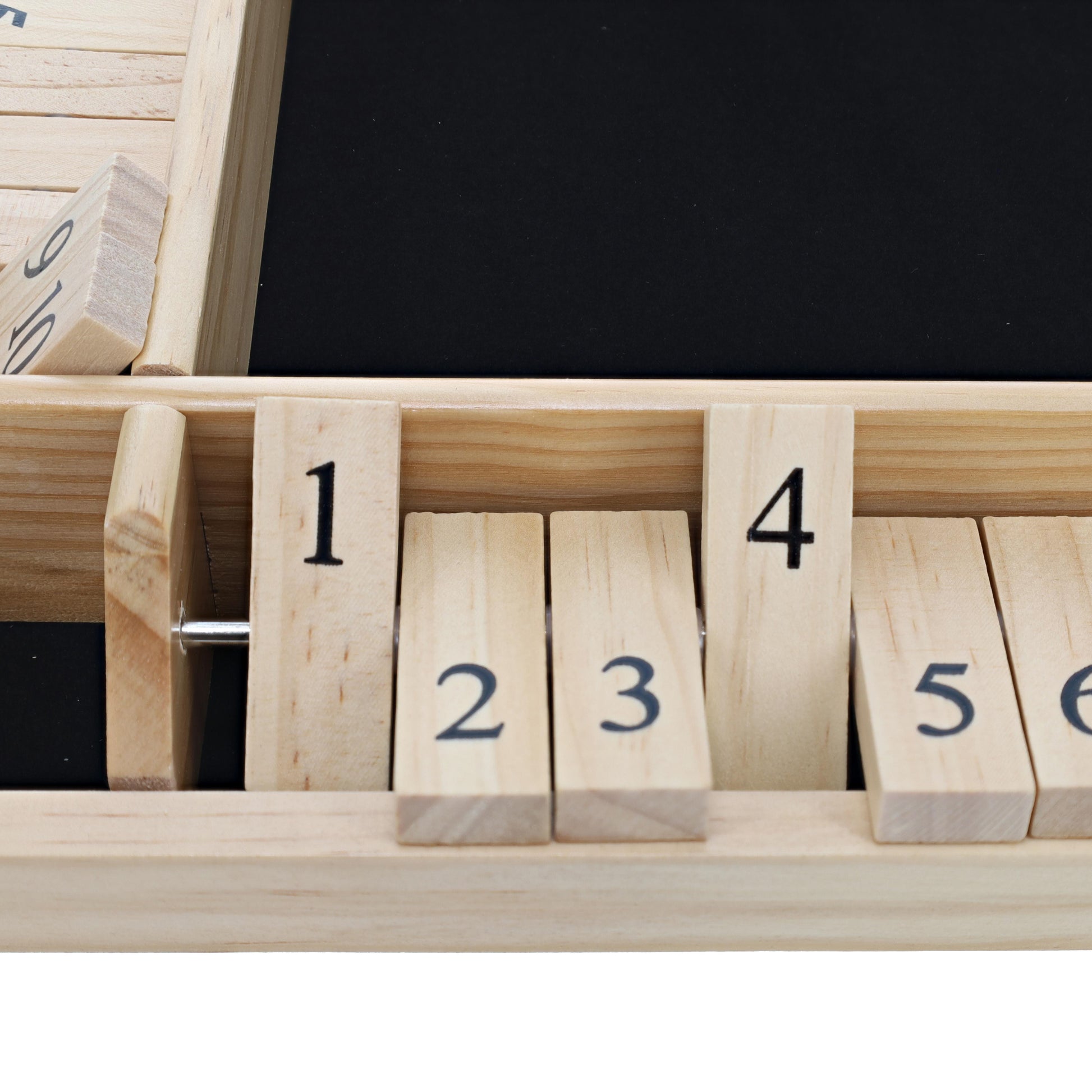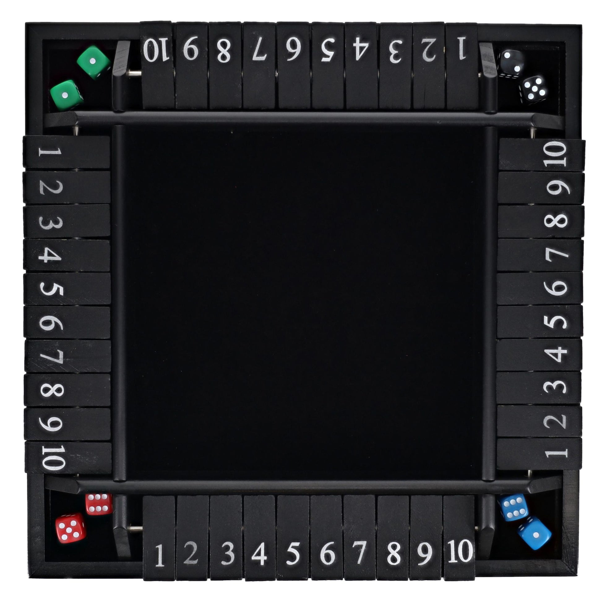 This beautiful game is crafted from solid hardwood and features 10 wooden number tiles bringing more numerical combinations into play. Can be played with any number of players. Includes eight dice (4-different colors) so each player gets their own dice color. This makes it easier for all players to be rolling at once if you prefer to play the race version of the game. The playing surface is lined with black velveteen felt for the softest of dice rolls. Also features velveteen felt on the underside of the game to prevent scratches to table top surfaces. Originally, the game was played by fishermen off the coast of Normandy more than two hundred years ago. After a long day at sea, they would squander away their earnings by playing this dice game. It is no wonder it is still enjoyed in pubs across North America and Europe. While we don't advocate gambling, we do advocate this beautiful, well-constructed game that will provide hours of fun wherever you go. This game also teaches and reinforces addition skills as players roll the dice, add up the values, and then lay down the tiles that have the sum. These simple rules keep the player engaged in computing addition facts while enjoying socializing with friends. Teachers use this game in classrooms and the game's sturdy construction will make it outlast other versions.