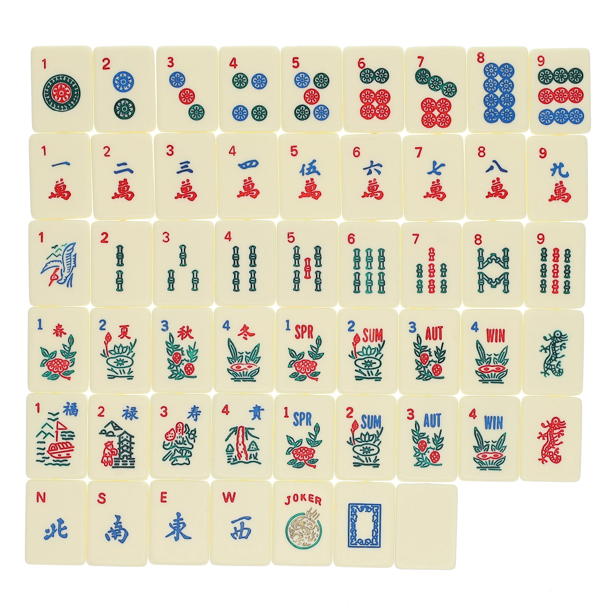 If you love the-game-of-a-hundred-intelligences, you'll love this complete set of American Mahjong that features tiles, four plastic racks, 2 dice, playing chips and instruction booklet. Tiles are white, engraved, painted, and made from melamine. Includes 4 all-in-one pusher and tile rack combo, so easy to use and so easy to put away after game play. Each set comes with 2 dice, 100 money chips, and bettor, 166 tiles, 4 arms, and instructions.