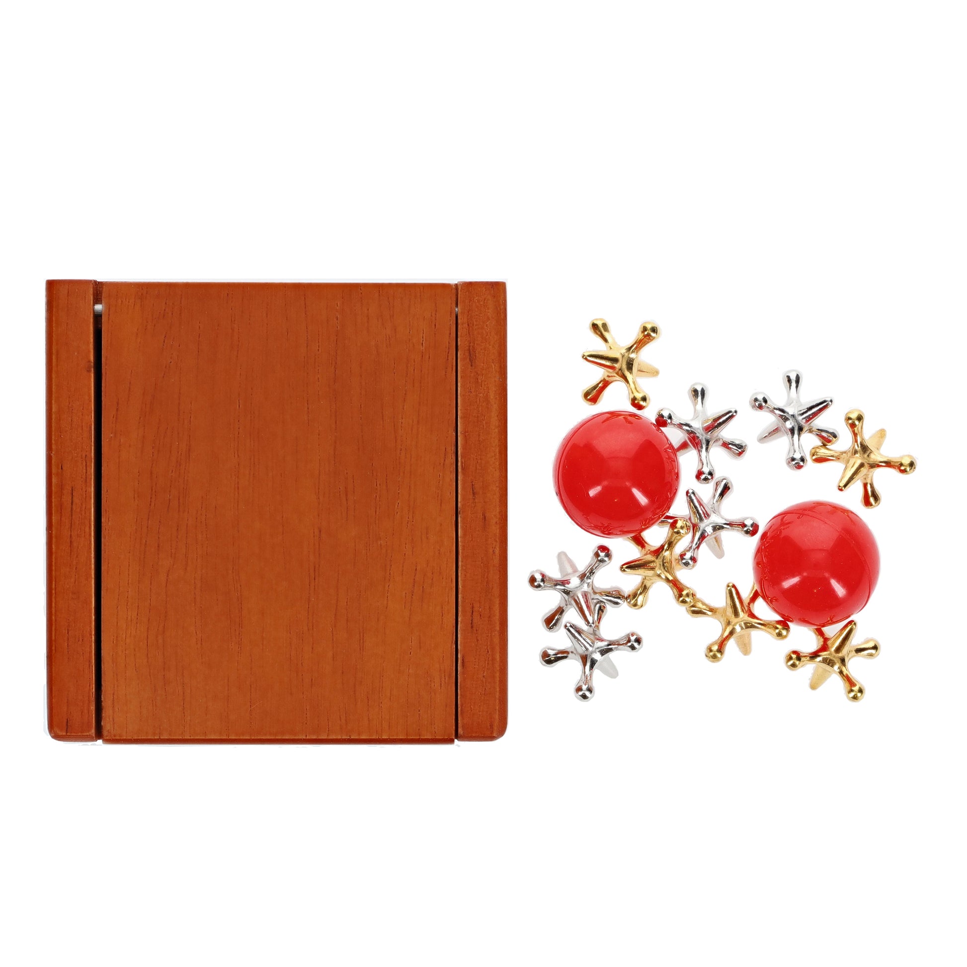 The game of jacks has been a playground game for many generations. Players learn socialization skills, hand-eye coordination and fine-motor skills when simultaneously bouncing a ball and scooping up a specific number of jacks. Can be played alone or with friends. The better you get, the more you want to play! This gift set comes in a finely crafted wooden box with a magnetic closure. A nostalgic game of skill and infinite fun. Perfect for travel!