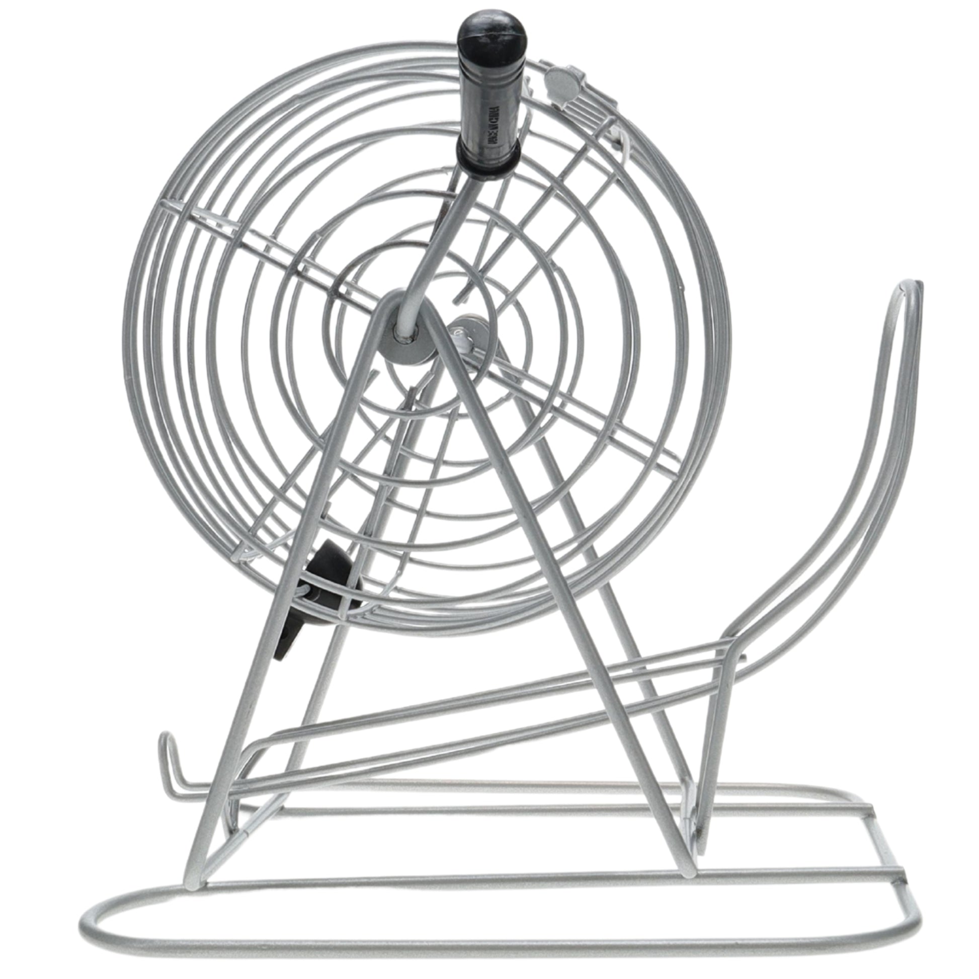 - BINGO SUPPLIES: Retro chrome Bingo cage (8 x 7 in.), 75 Bingo balls (.62 inch), solid wood folding master board (14.25 x 6 in.), 18 reusable Bingo sheets (4.38 x 4.78 in.) and colorful bingo chips.