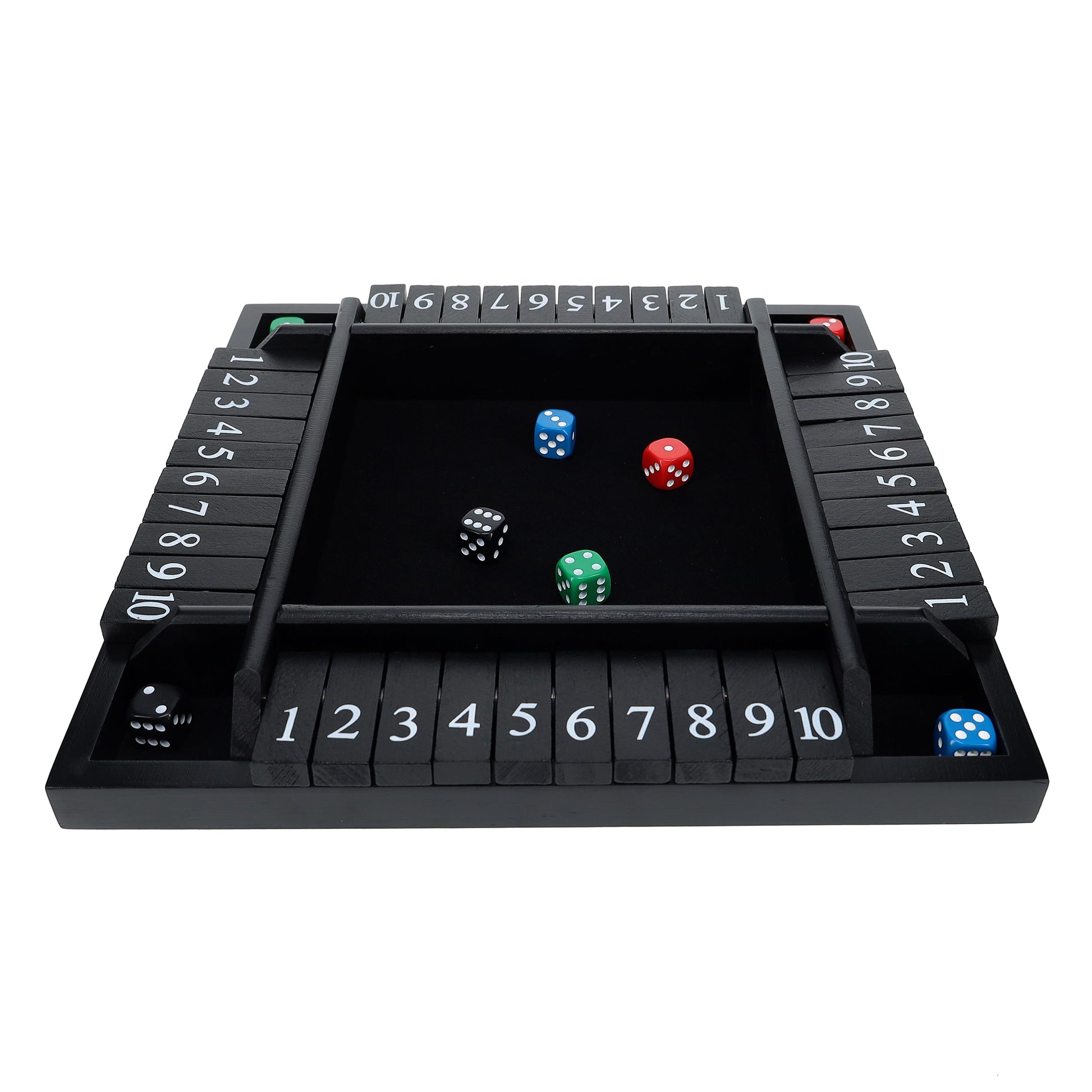 Pacific Shore Games 4 Player Shut the Box Dice Board Game with Black Stained Wood - 12 in.