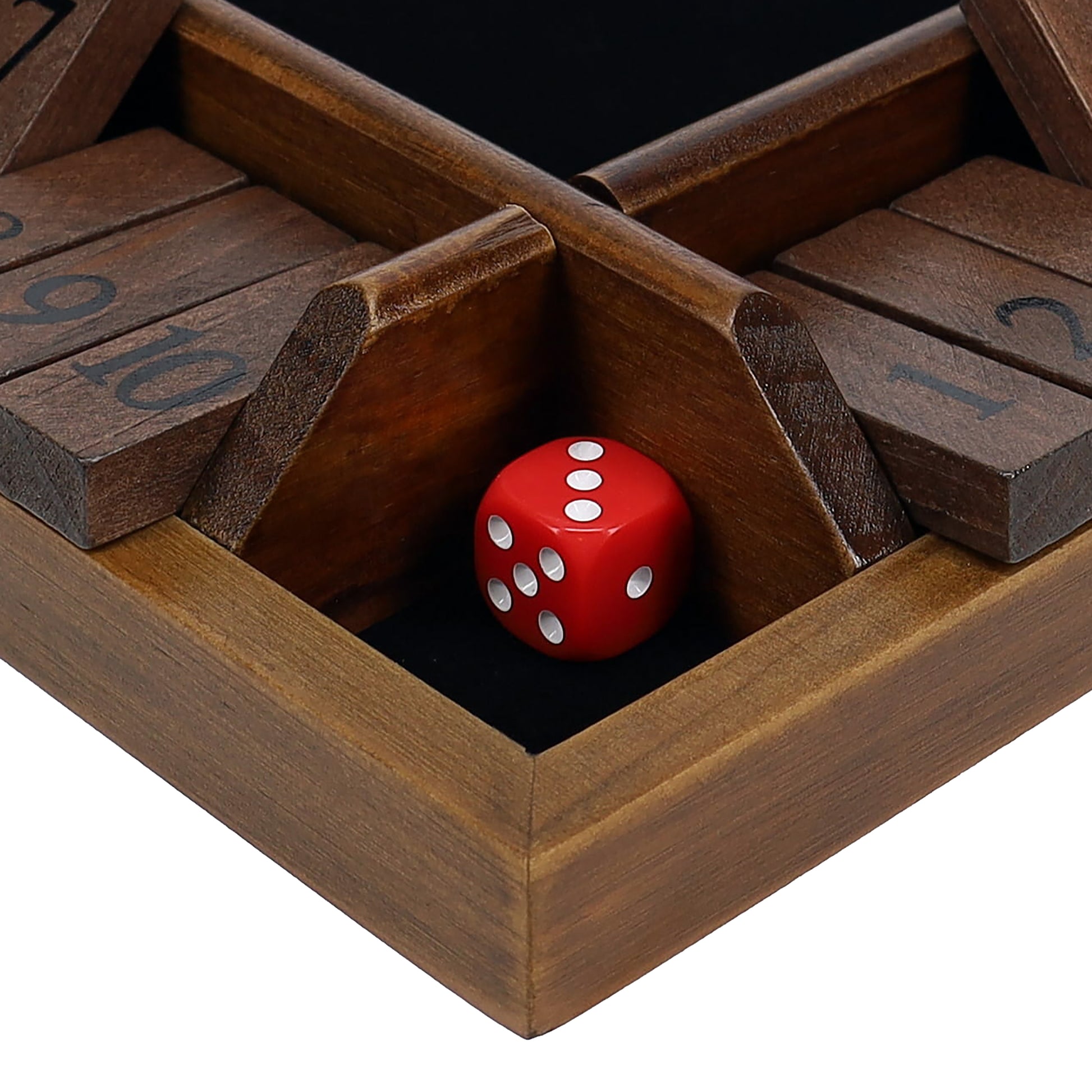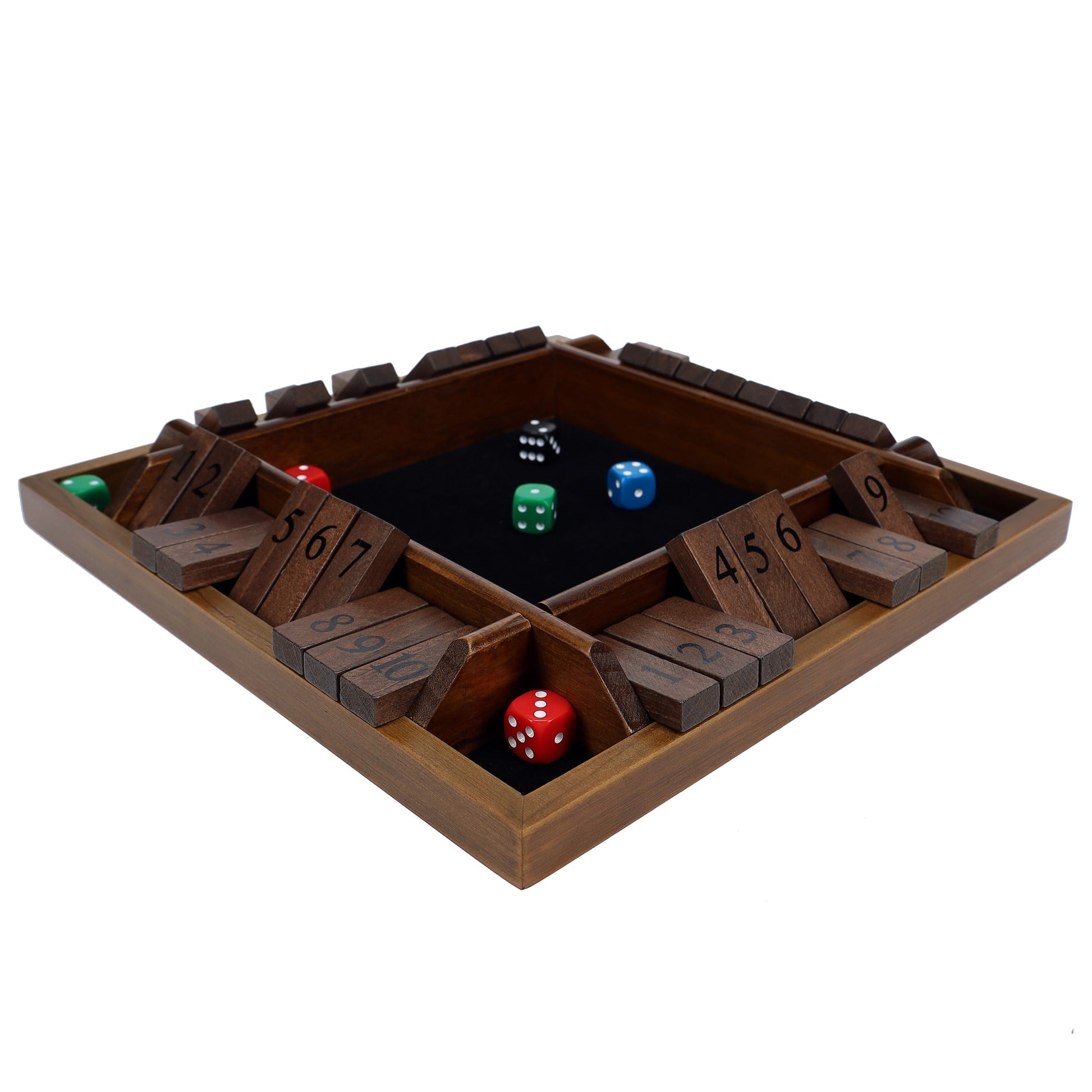 Pacific Shore Games 4 Player Shut the Box Dice Board Game with Walnut Stained Wood - 12 in.