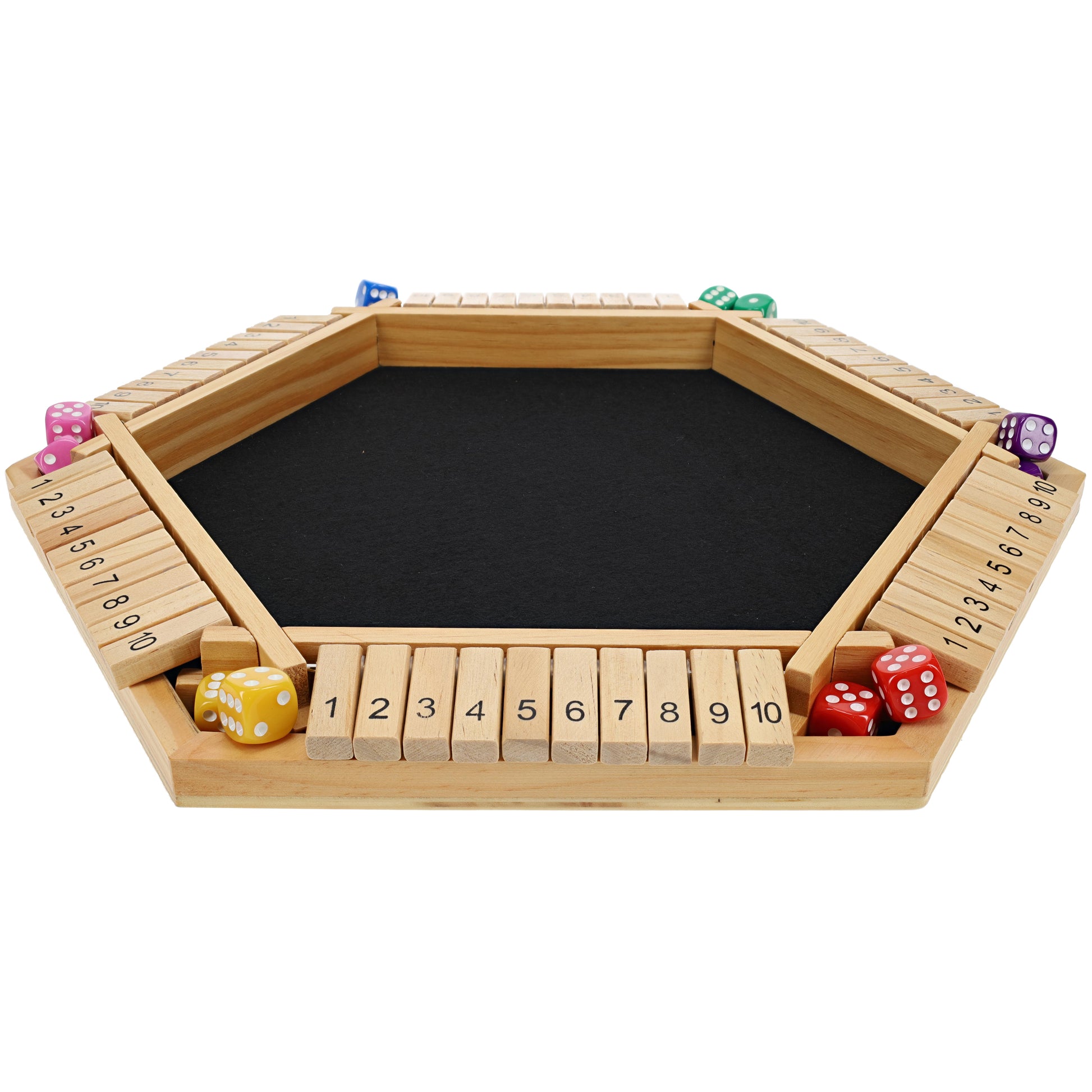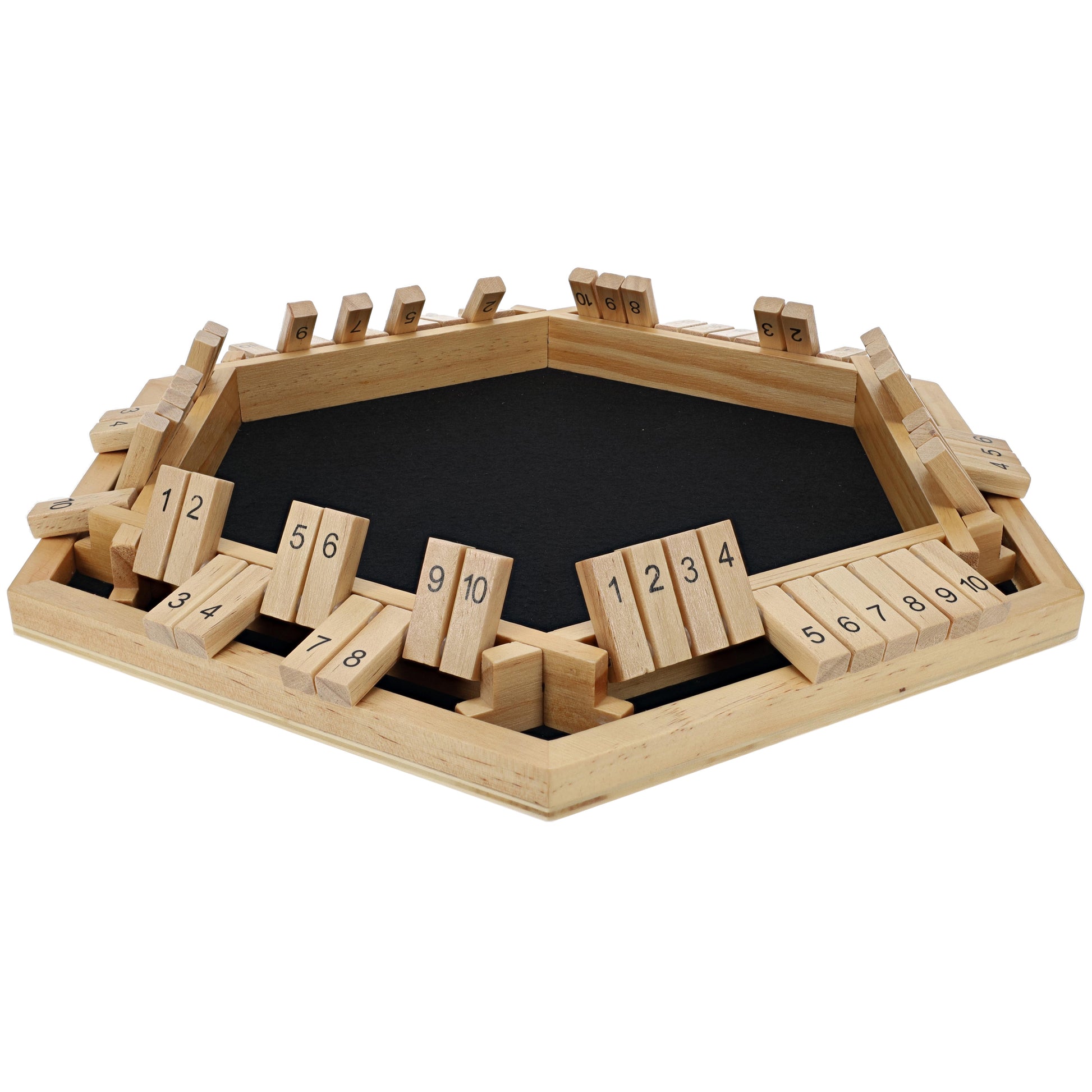 Pacific Shore Games 6 Player 14 in. Shut The Box Board Game, Wood