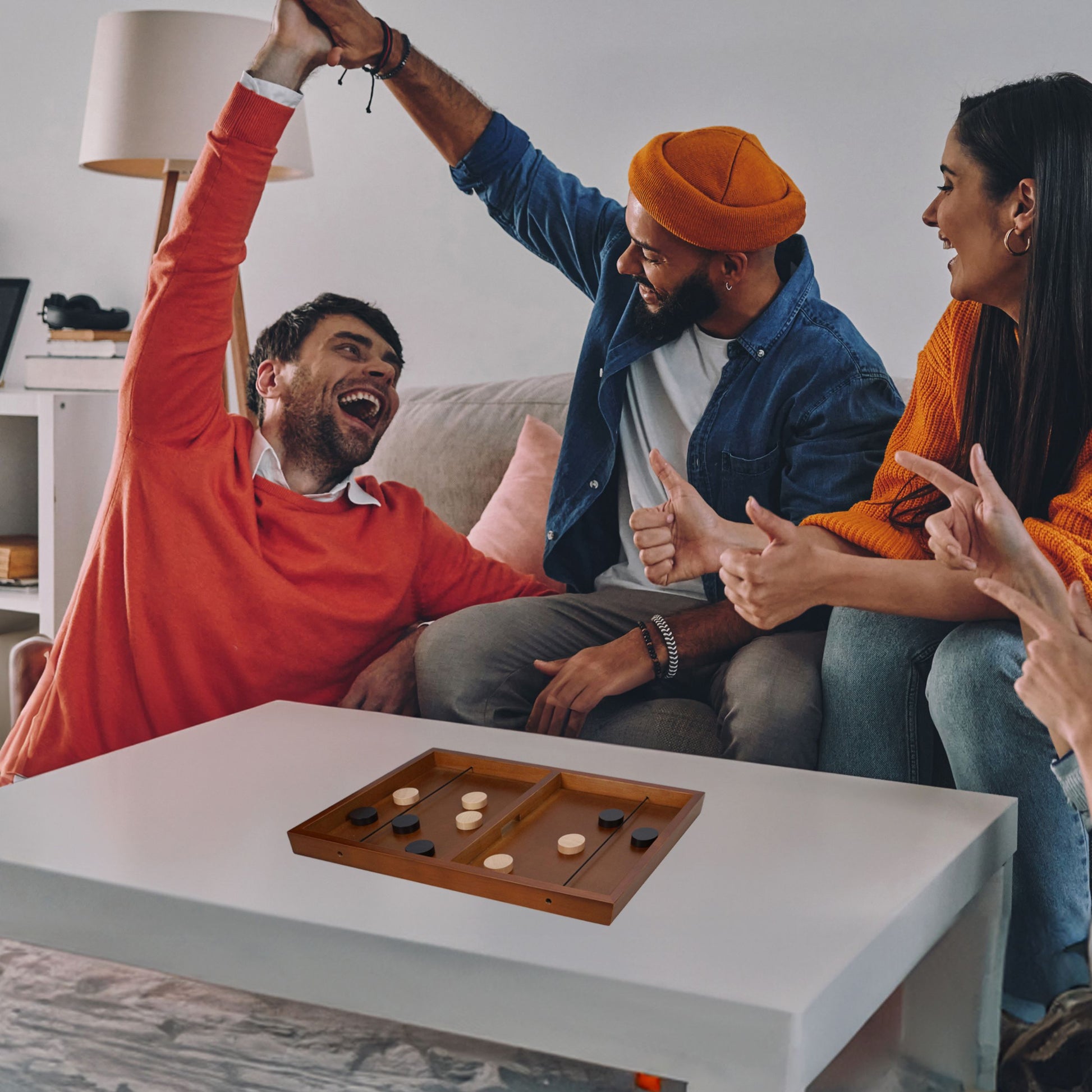 - EXCITING GAMEPLAY: Get ready for intense, fast-paced wooden board game fun! Race to sling pucks across the board as you sabotage your opponents. This sling puck game combines skill and strategy, perfect for quick, competitive matches with family and friends.