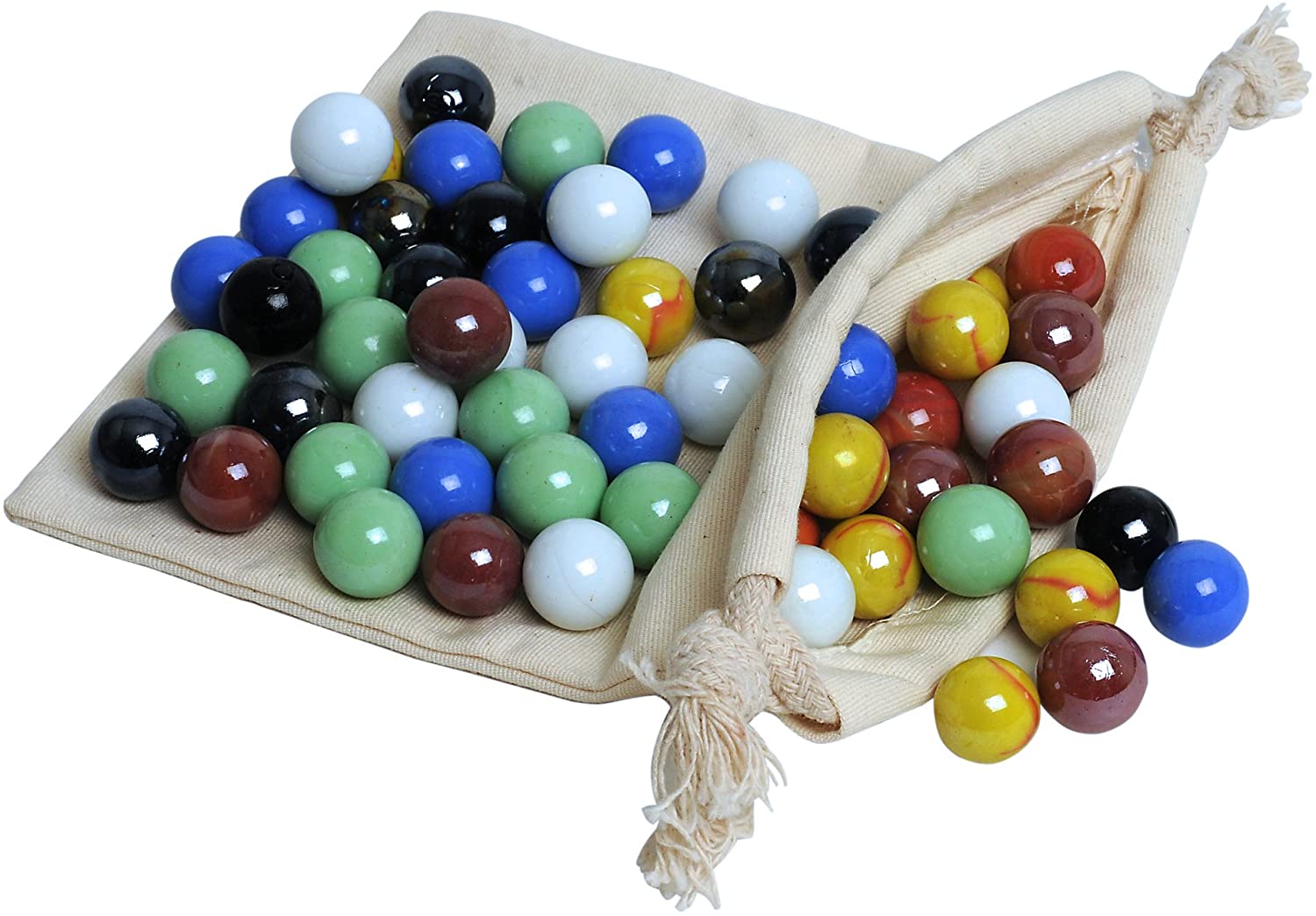 - 11.5 in. solid wood board with brightly colored glass marbles and storage bag