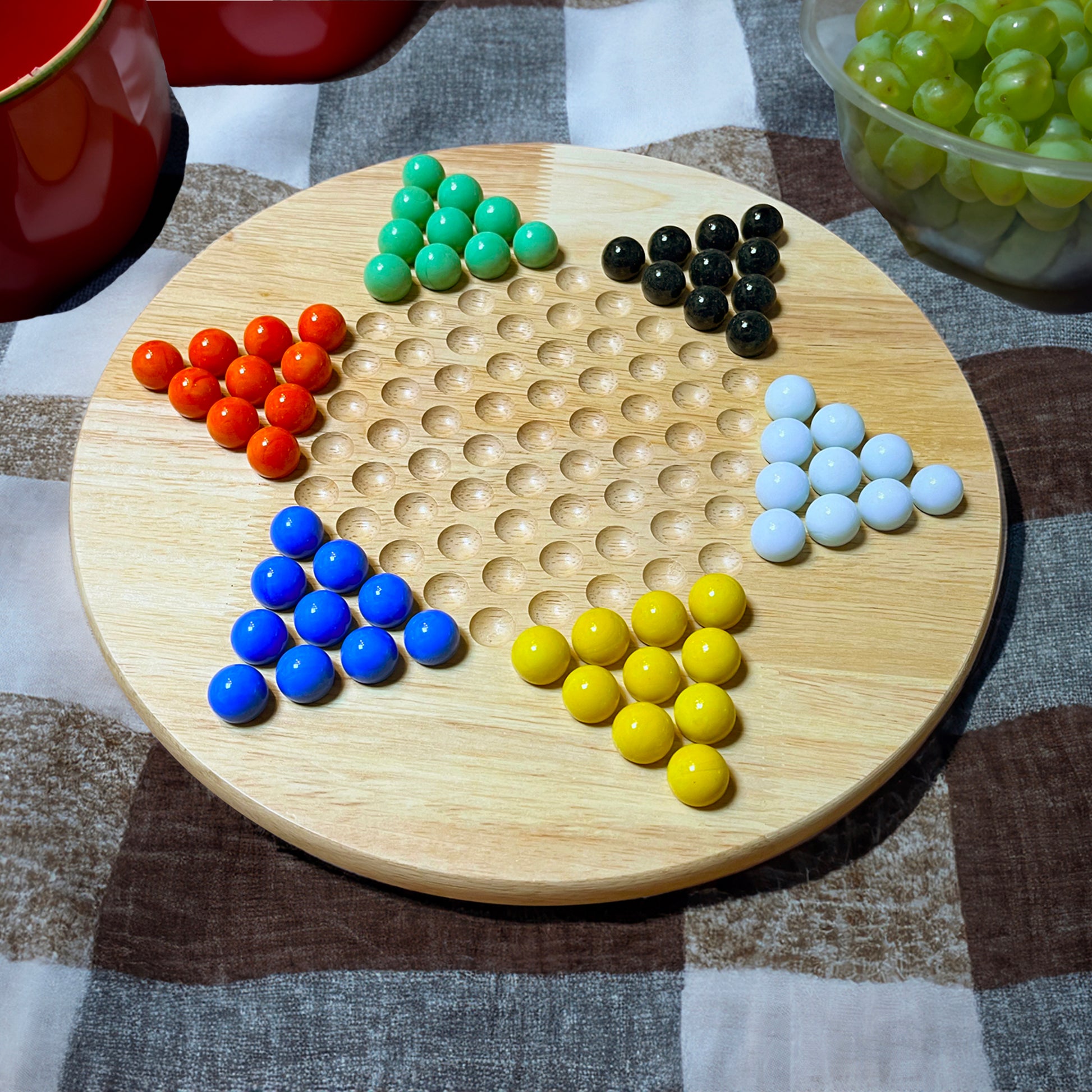 Wood Chinese Checkers Set with Glass Marbles - 11.5 Inch