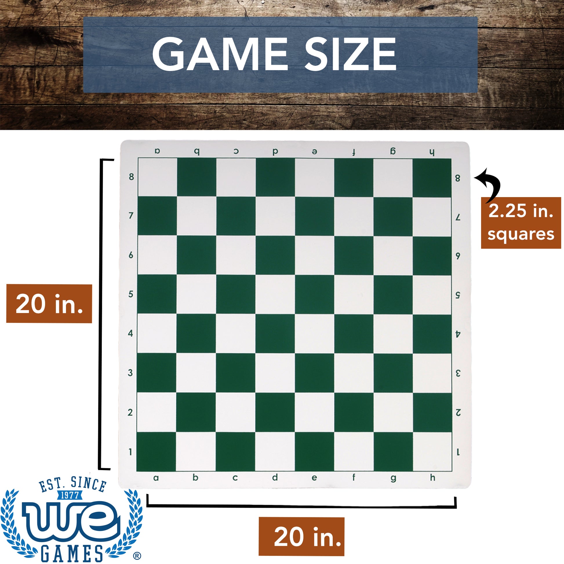 - Chess board measures 20 inches