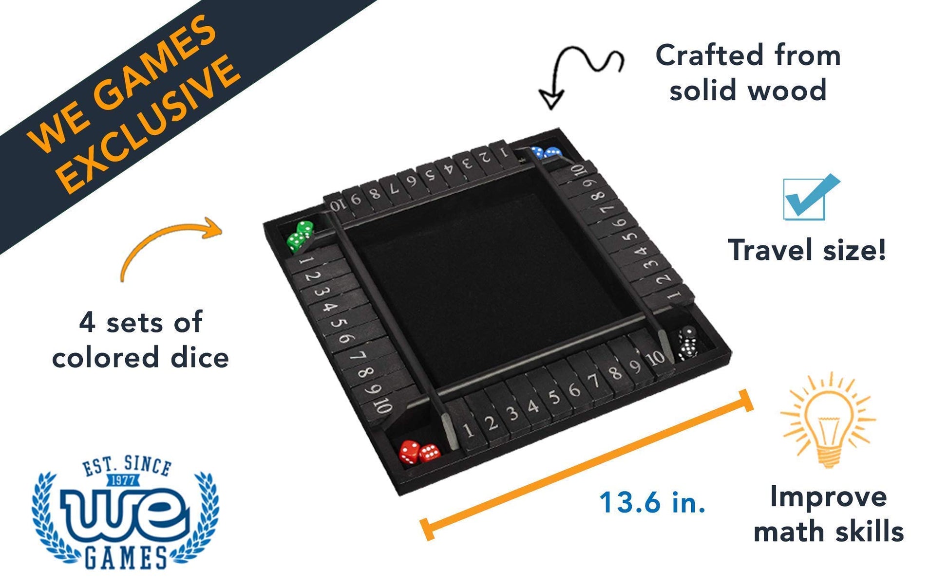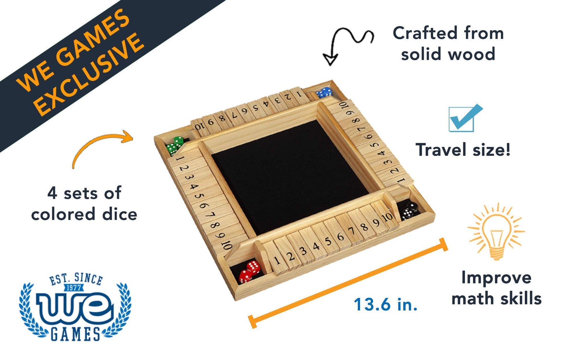 WE Games 4 Player 14 in. Shut The Box Board Game with Lid