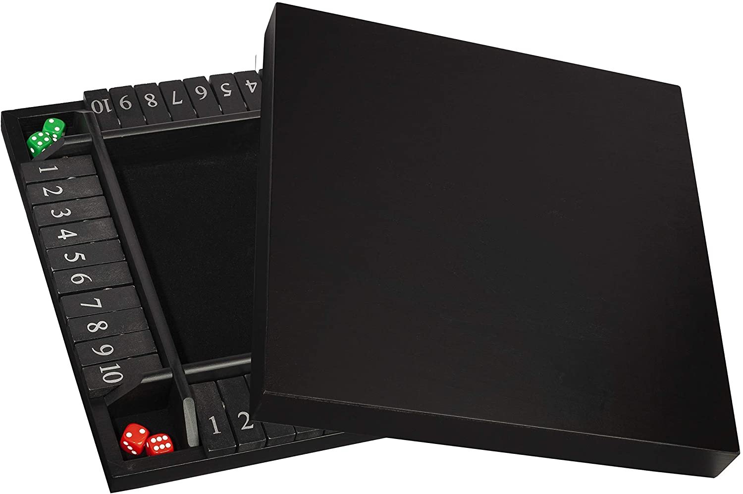 This beautiful game with a lid is crafted from solid hardwood and features 10 wooden number tiles bringing more numerical combinations into play. Can be played with any number of players, but the 4-sided board makes it ideal for four players. Includes eight dice (4-different colors) so each player gets their own dice color. This makes it easier for all players to be rolling at once if you prefer to play the race version of the game. The playing surface is lined with black velveteen felt for the softest of dice rolls. Also features velveteen felt on the underside of the game to prevent scratches to table top surfaces. Originally, the game was played by fishermen off the coast of Normandy more than two hundred years ago. After a long day at sea, they would squander away their earnings by playing this dice game. Its no wonder it is still enjoyed in pubs across North America and Europe. While we don't advocate gambling, we do advocate this beautiful, well-constructed game that will provide hours of fun wherever you go. This game also teaches and reinforces addition skills as players roll the dice, add up the values, and then lay down the tiles that have the sum. These simple rules keep the player engaged in computing addition facts while enjoying socializing with friends. Teachers use this game in classrooms and the game's sturdy construction will make it outlast other versions.