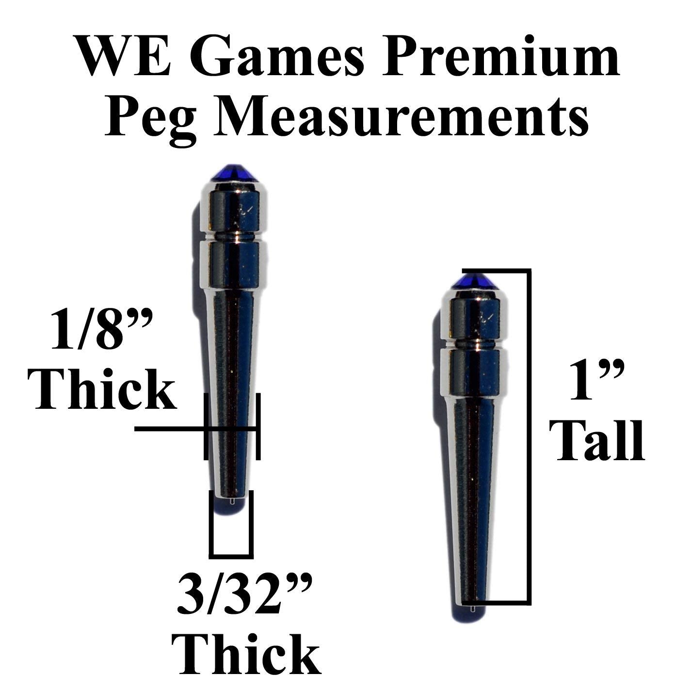 The Swarovski name has set the standard in luxury fashion design crystals since the late 1800's. These Swarovski crystal cribbage pegs bring the same beauty and style of Austrian crystals to your best cribbage board. Makes a stand-out gift for any cribbage player. The pegs are chrome plated with a Swarovski Austrian crystal rhinestone affixed on the top. Easy grip tops make them easier to grasp between the fingers and the tapered overall design allows them to work well with larger peg holes to to 3/16 of an inch. This set includes four different colors which makes them ideal for a two, three, or four-player cribbage board. Will fit most cribbage boards with standard .125 Inch diameter peg holes. We recommend that you measure the holes of your cribbage board prior to purchase to be sure the dimensions of these pegs will fit your board.