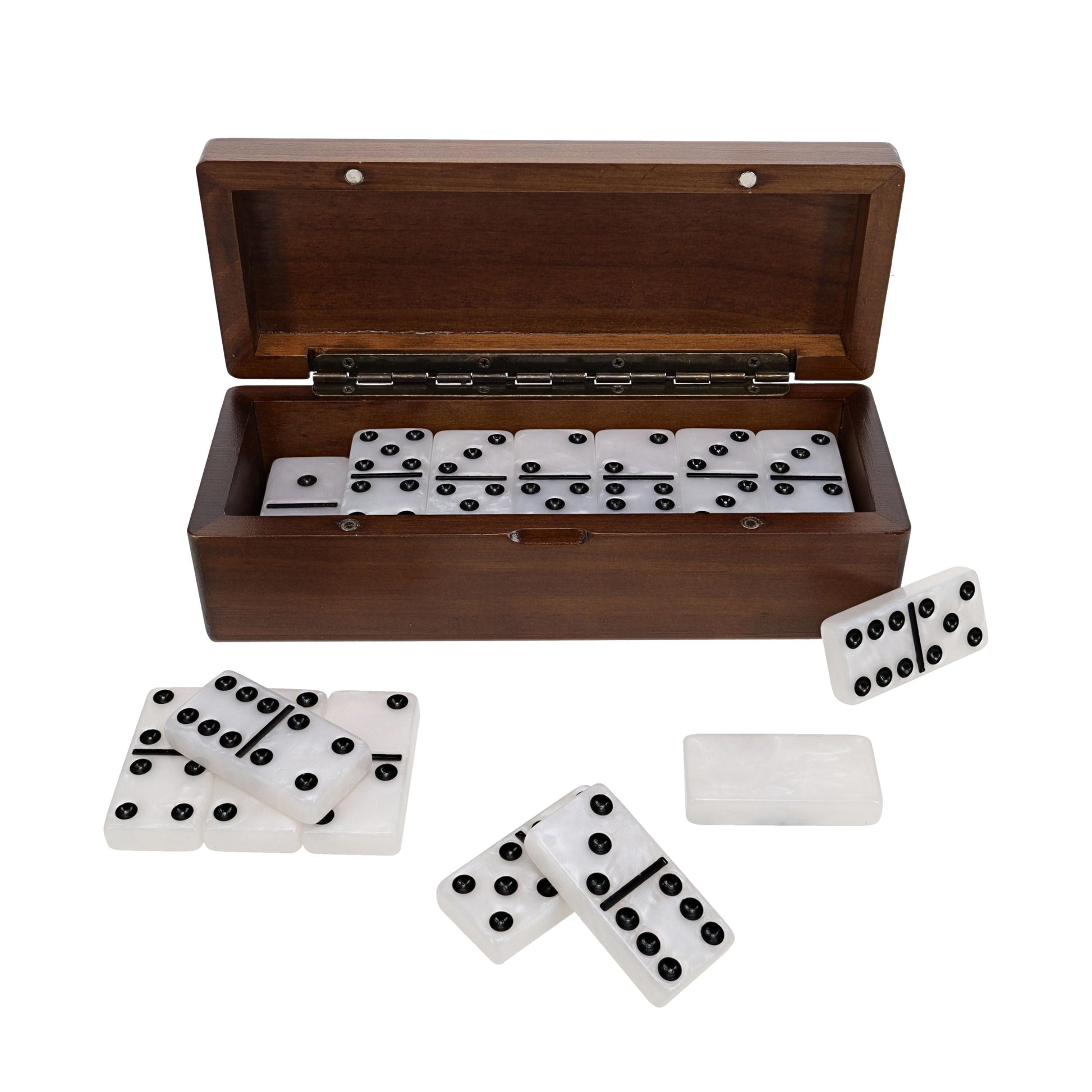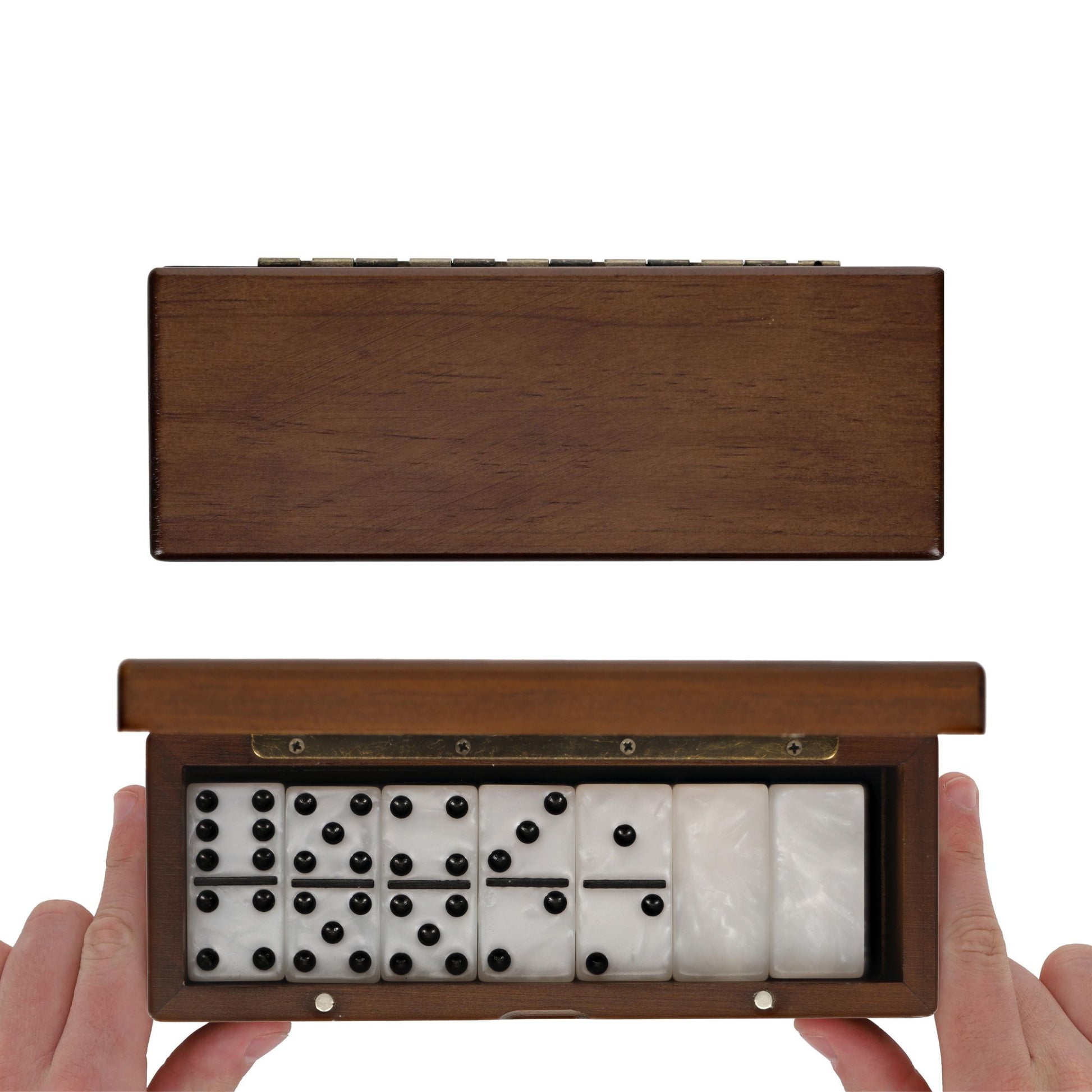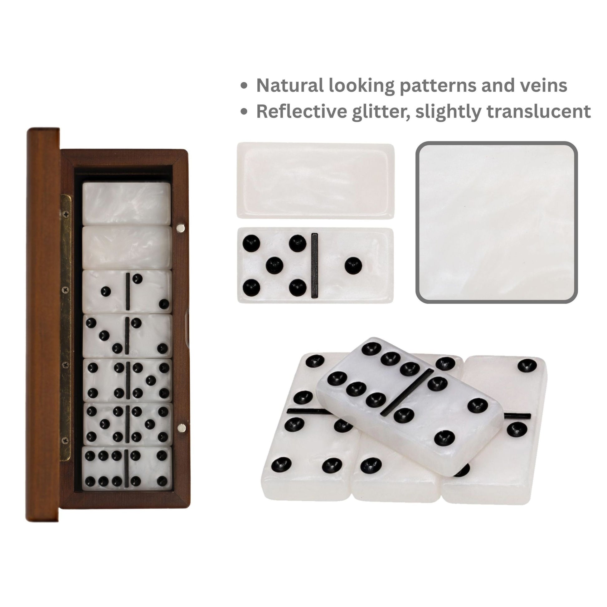WE Games Double 6 Marbleized Dominoes in Magnetic Wooden Travel Box, White Color