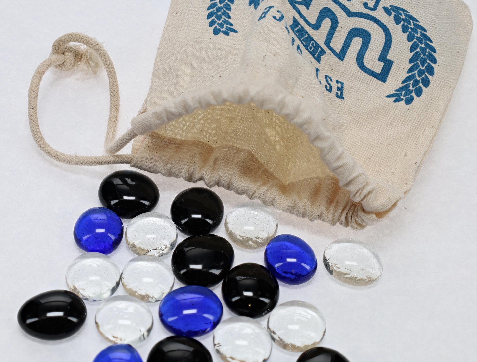 Enhance your Mancala gaming experience with this set of glass stones from WE Games. Made specifically for WE Games brand Mancala boards, this set includes 48 handblown glass stones in assorted colors: blue, black, and clear/white. The stones measure approximately 5/8 to 7/8 inches in diameter, providing a satisfying weight and feel during gameplay. Please note that the size of the glass stones may vary, adding an element of unpredictability to your gaming sessions.