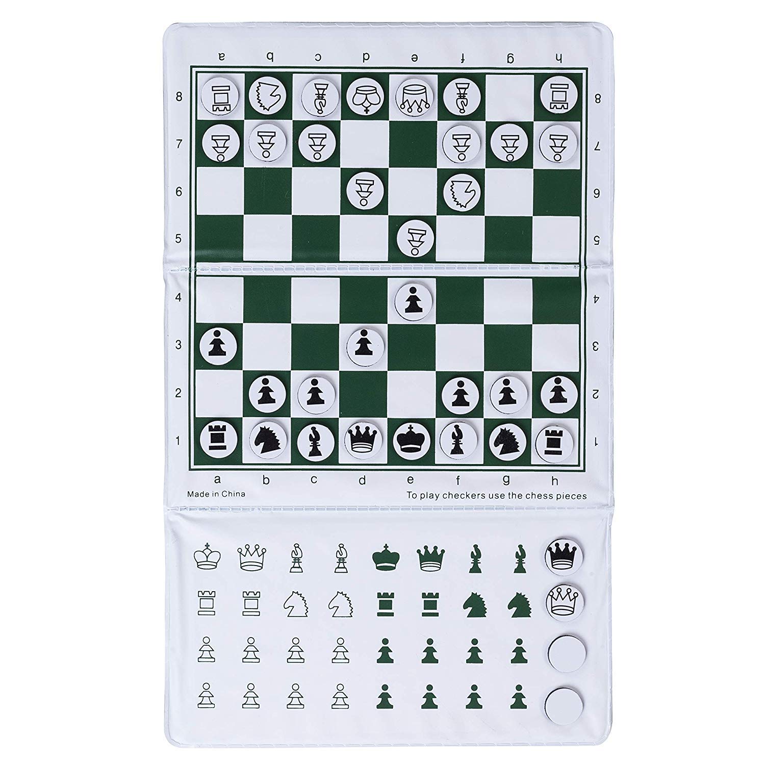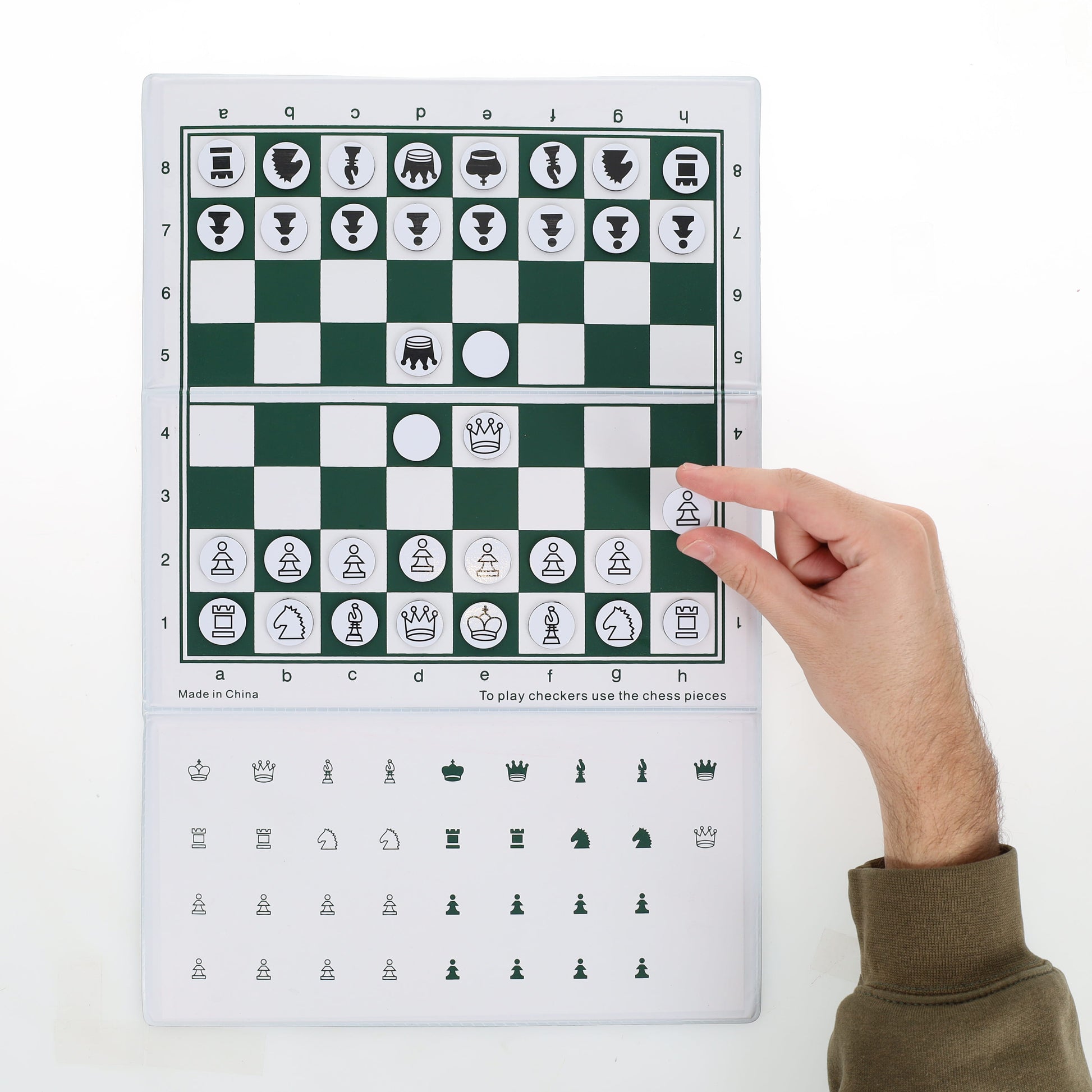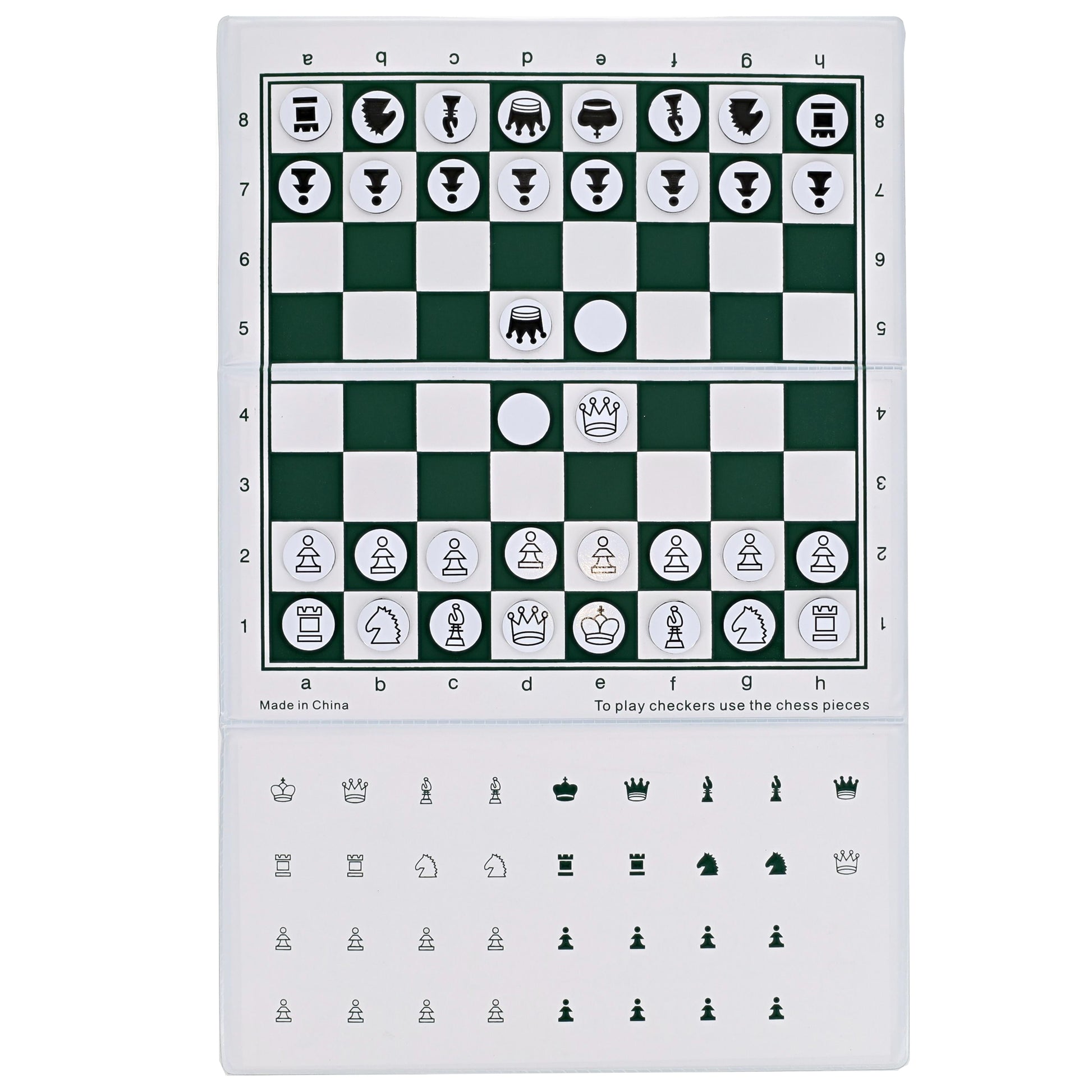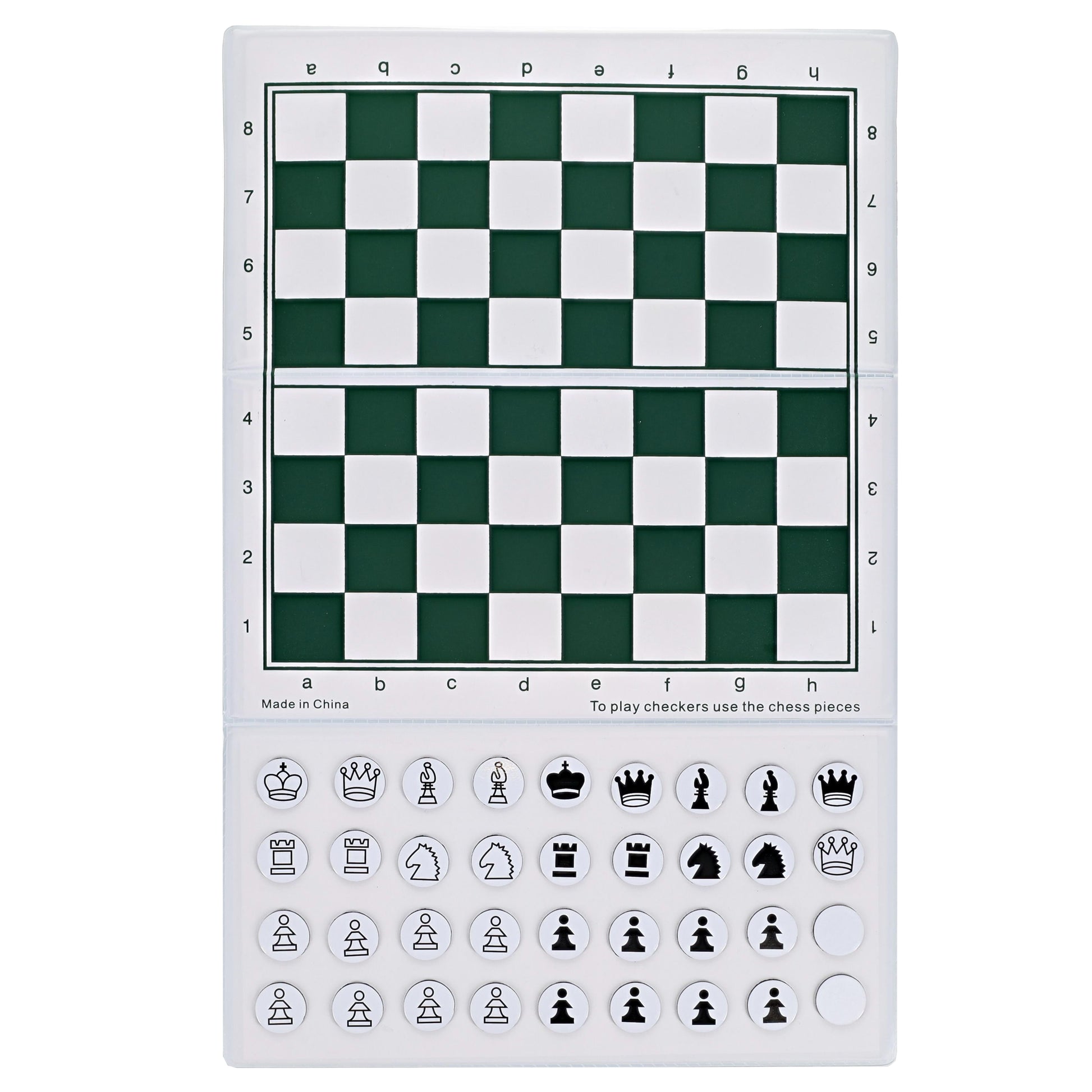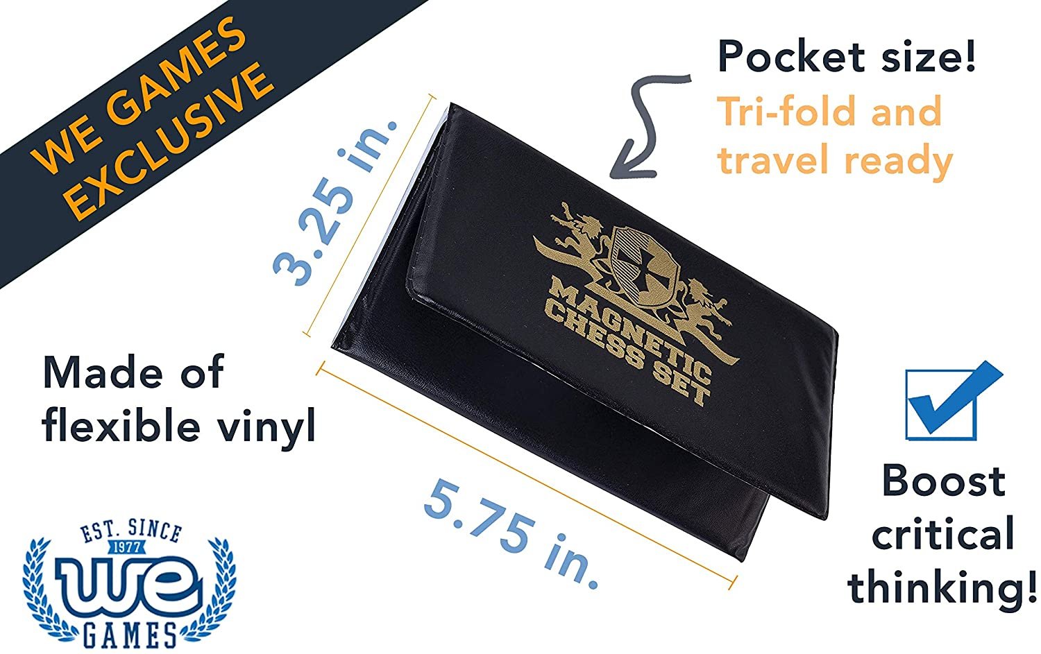 Whether you are walking to the park backpacking across Europe or traveling to a chess tournament this portable trifold chess set is treasured by chess enthusiasts across the world for its compact size that is easy to carry yet big enough to really enjoy playing a game. This updated version features a third strongly magnetized panel that holds the stored pieces in place so pieces are not easily lost. It includes 2 extras queens and 2 blank pieces as replacements just in case one goes missing.  Algebraic notation is on all sides making it a great learning tool for players at all levels.
