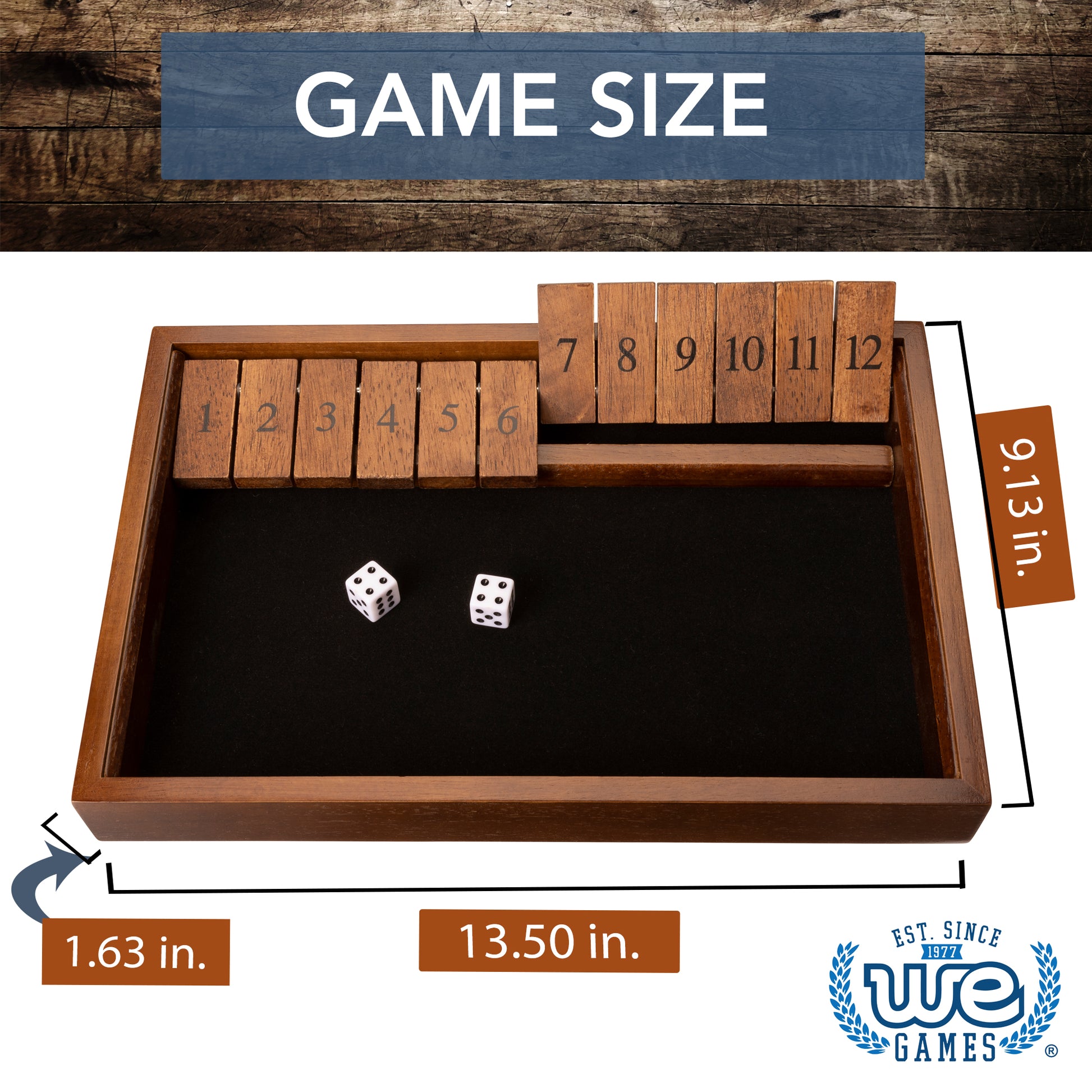 WE Games 12 Number Shut the Box Board Game, Walnut Stained Wood, 13.5 in.
