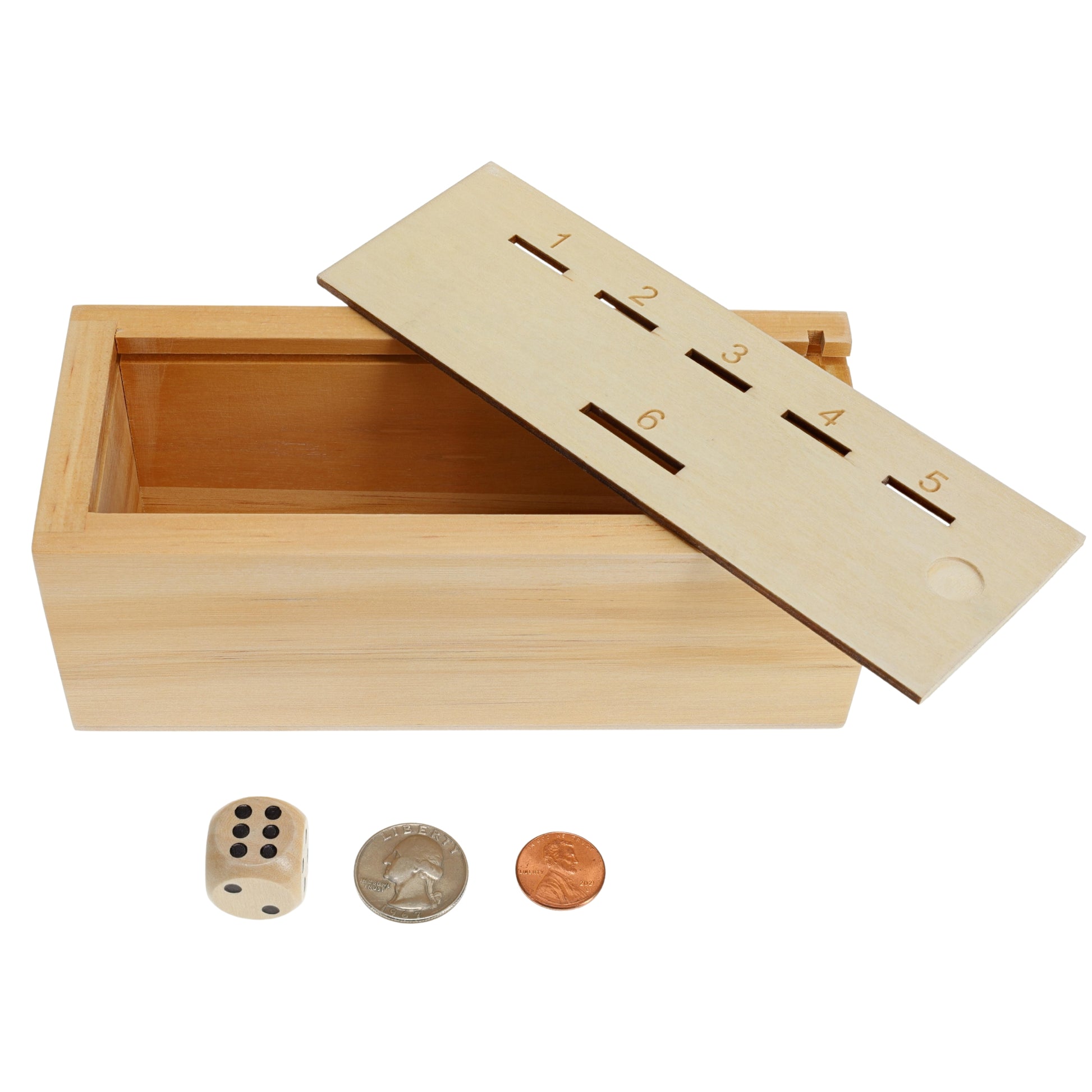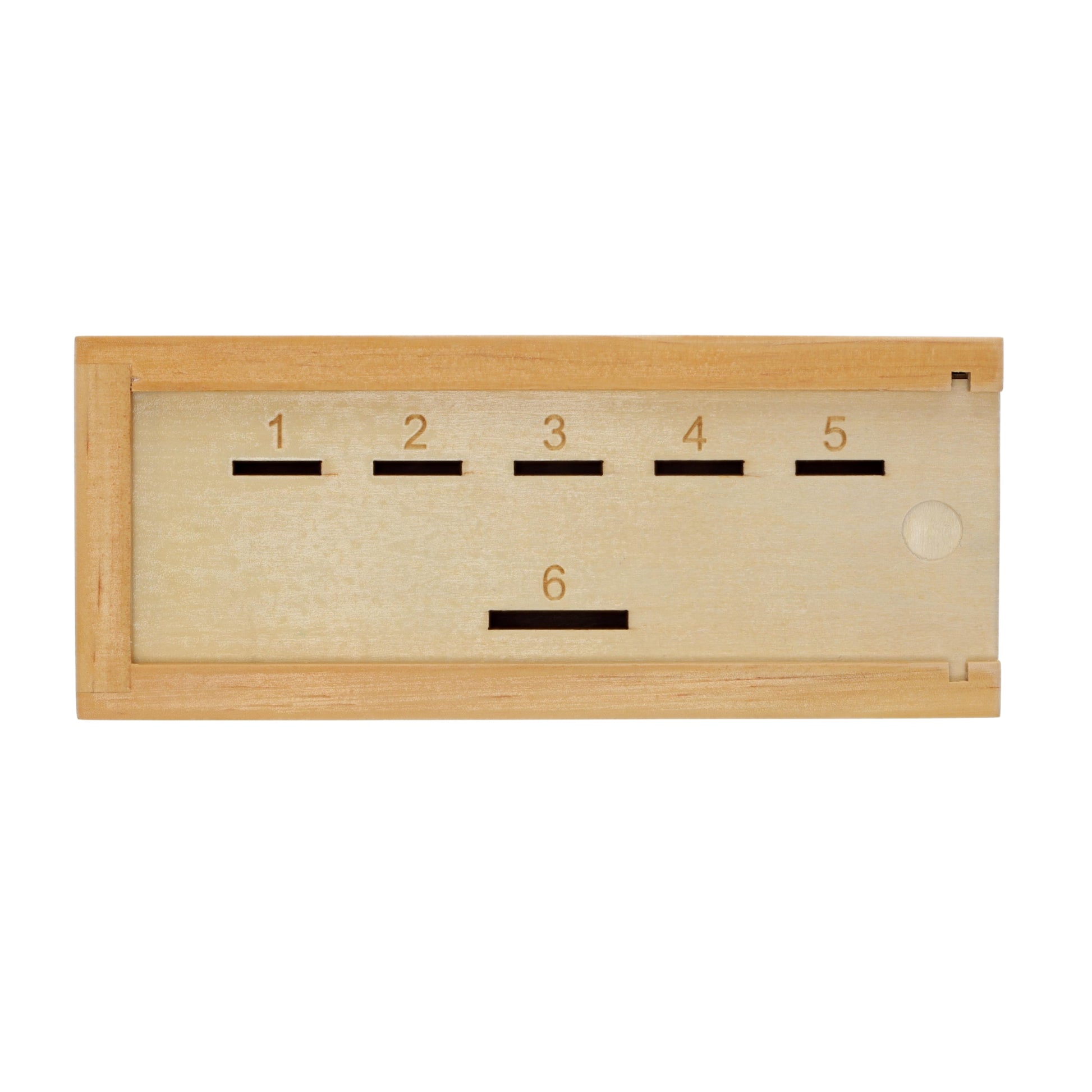 A classic wooden game with dice and coins, where you want to drop the coin into the 6 slot, since the first person to get rid of all of their coins, wins! Super Six Penny Game combines luck and strategy in a fast-paced race to empty your coins first. With every roll, you're faced with the choice to push your luck or play it safe — will you claim victory or hand your rivals the win? Makes an excellent gift for any family, gifts for men, or even a classroom recess game.